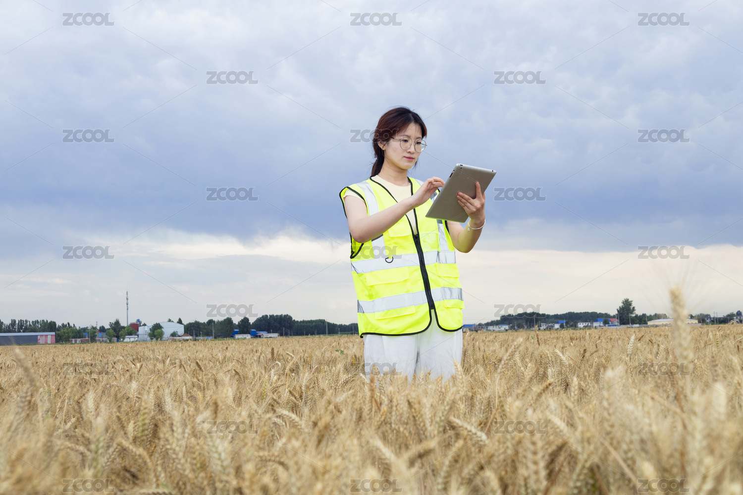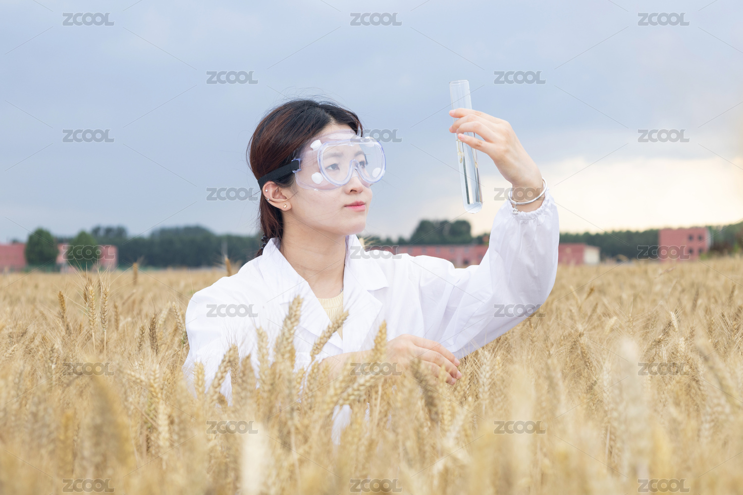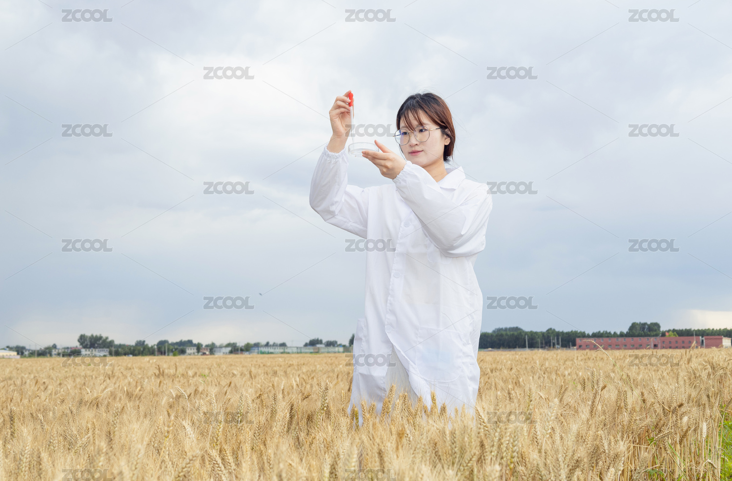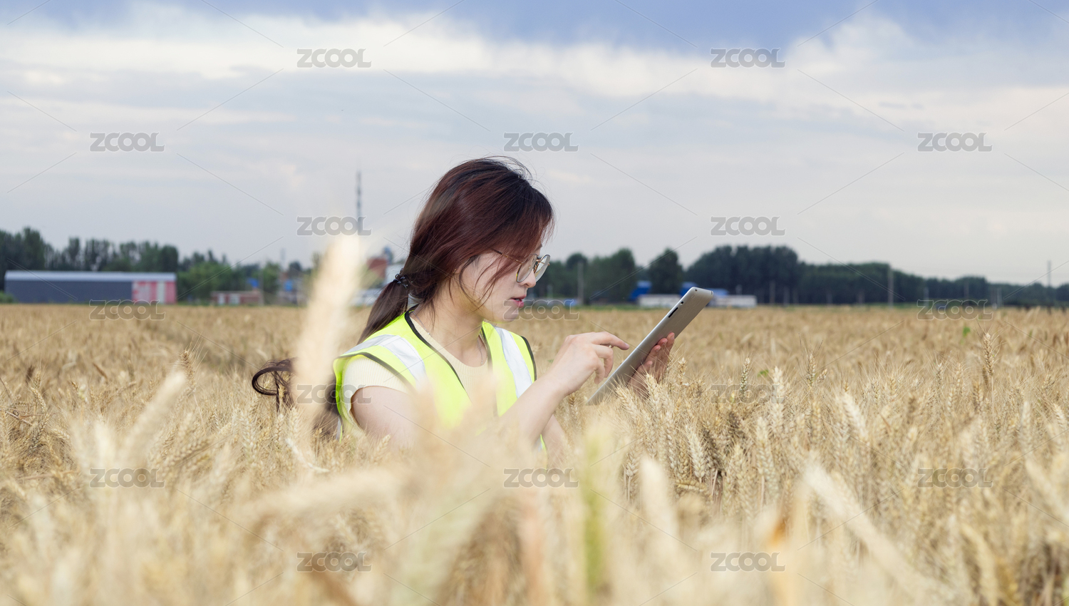 農(nóng)業(yè)試驗田里工作的年輕女性形象