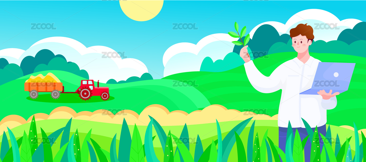 卡通農(nóng)業(yè)科技農(nóng)場鄉(xiāng)村發(fā)展拖拉機矢量插畫
