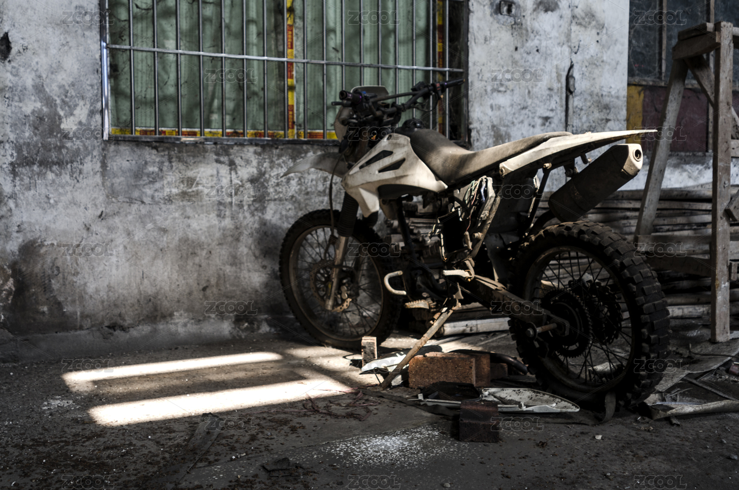 重慶一廢棄礦山廠房?jī)?nèi)的一輛爛摩托車(chē)