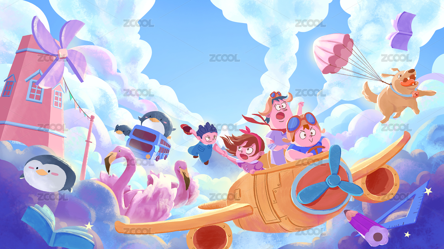 一起坐飛機(jī)冒險(xiǎn)的孩子們