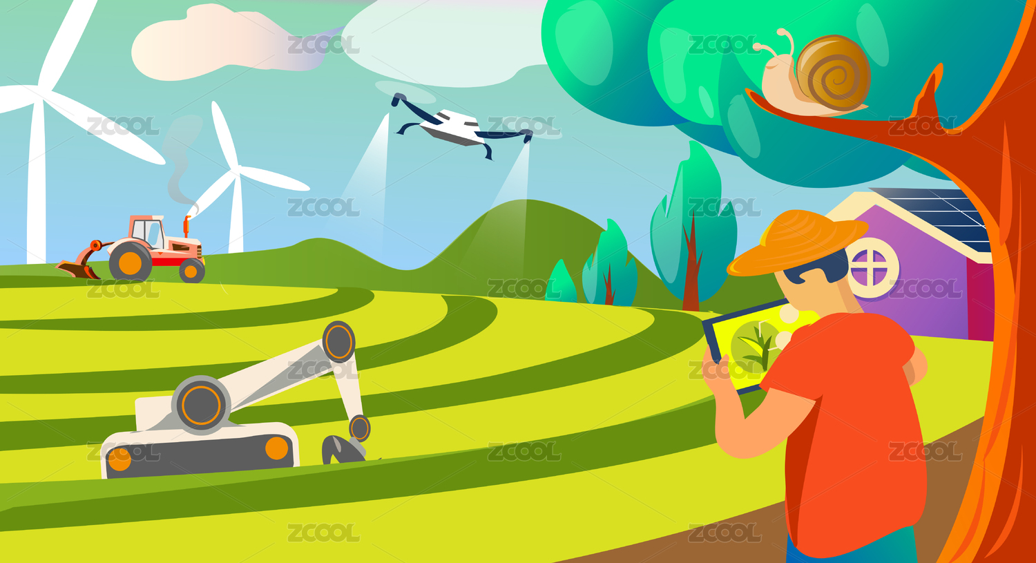 數(shù)字科技化新農(nóng)村更宜居生態(tài)更合諧矢量插畫