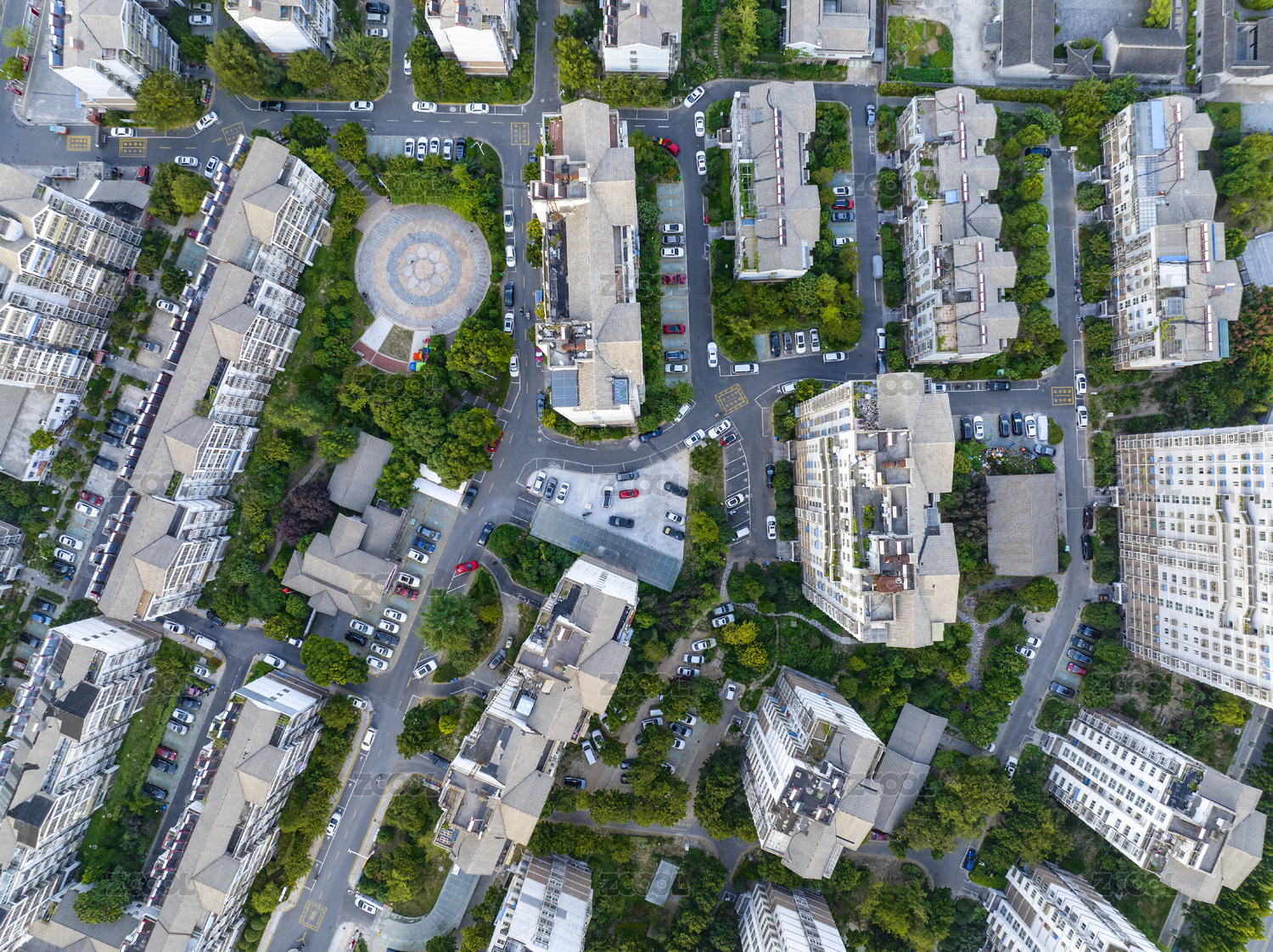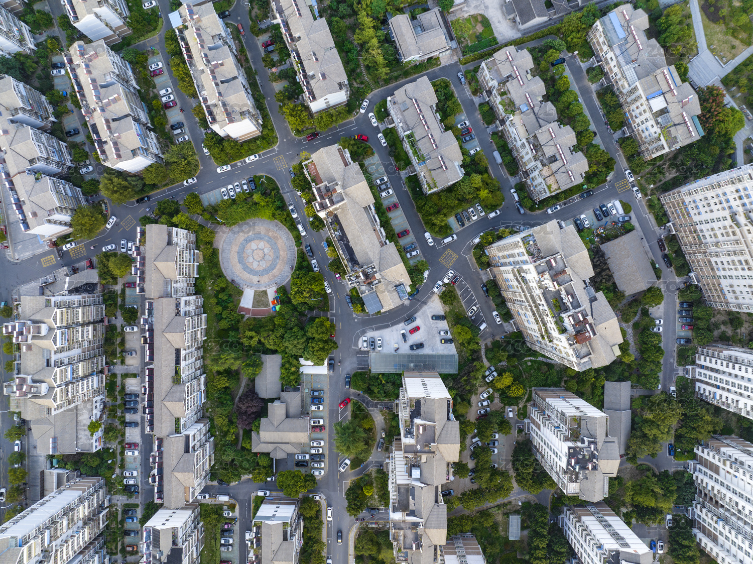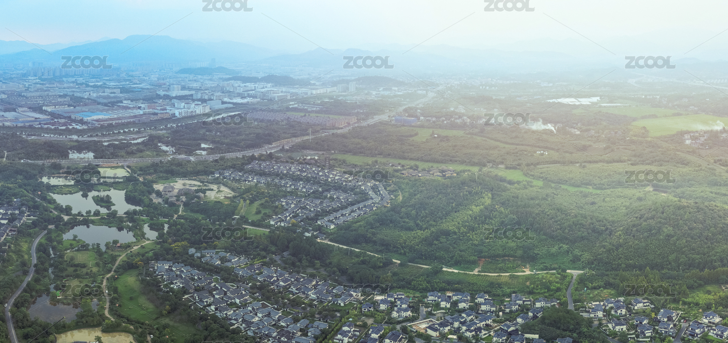 霞光滿天的江陰鄉(xiāng)鎮(zhèn)航拍