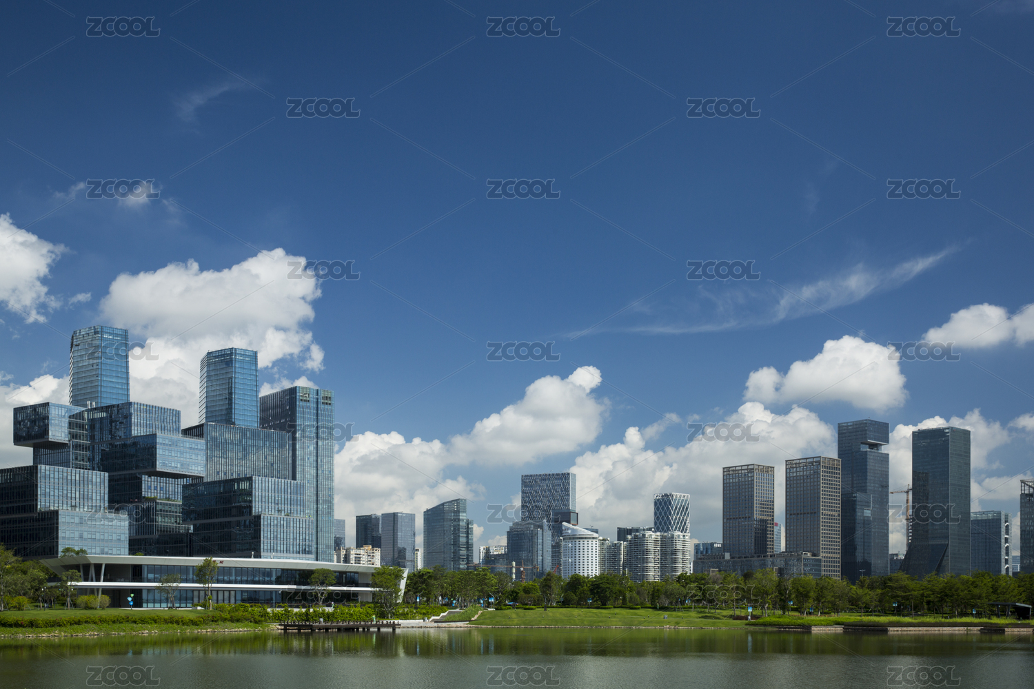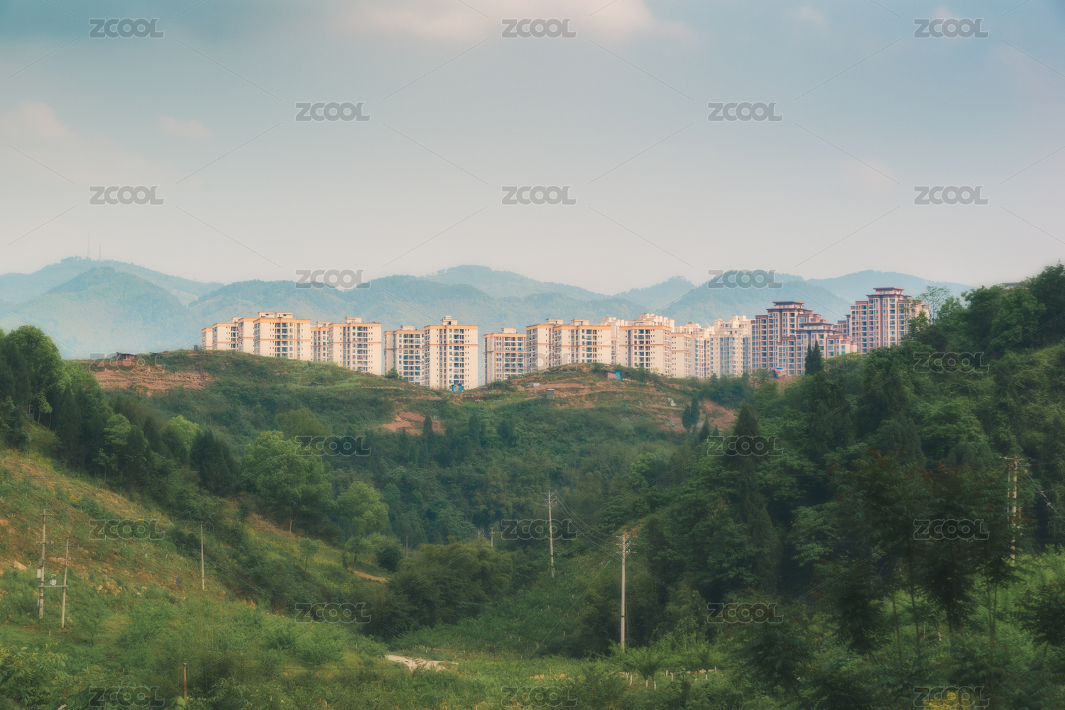 小河旁綠樹成蔭的城市住宅小區(qū)