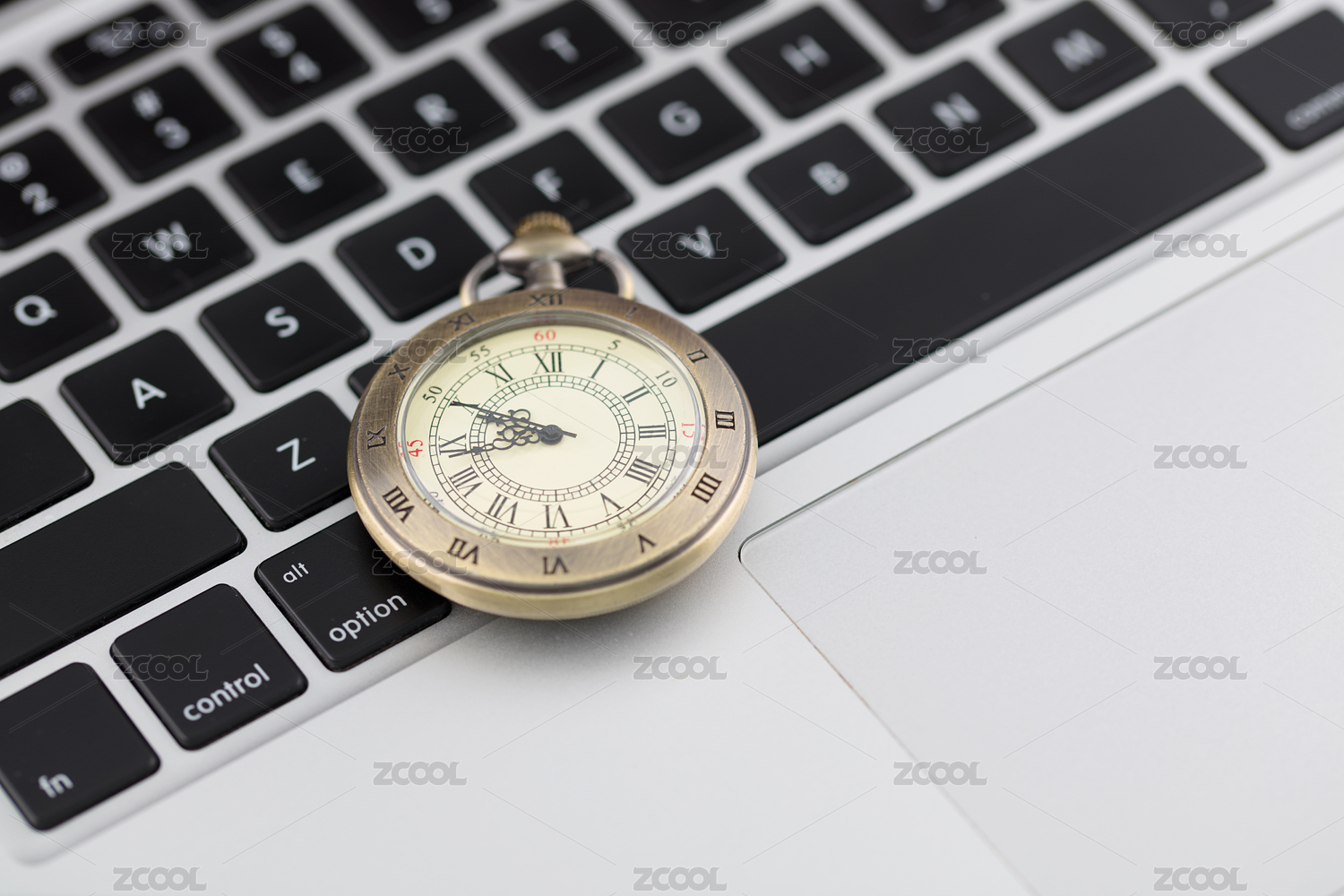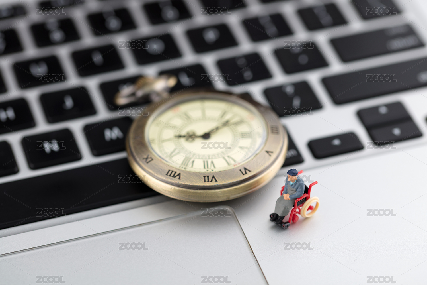 微縮攝影老人懷表在鍵盤上