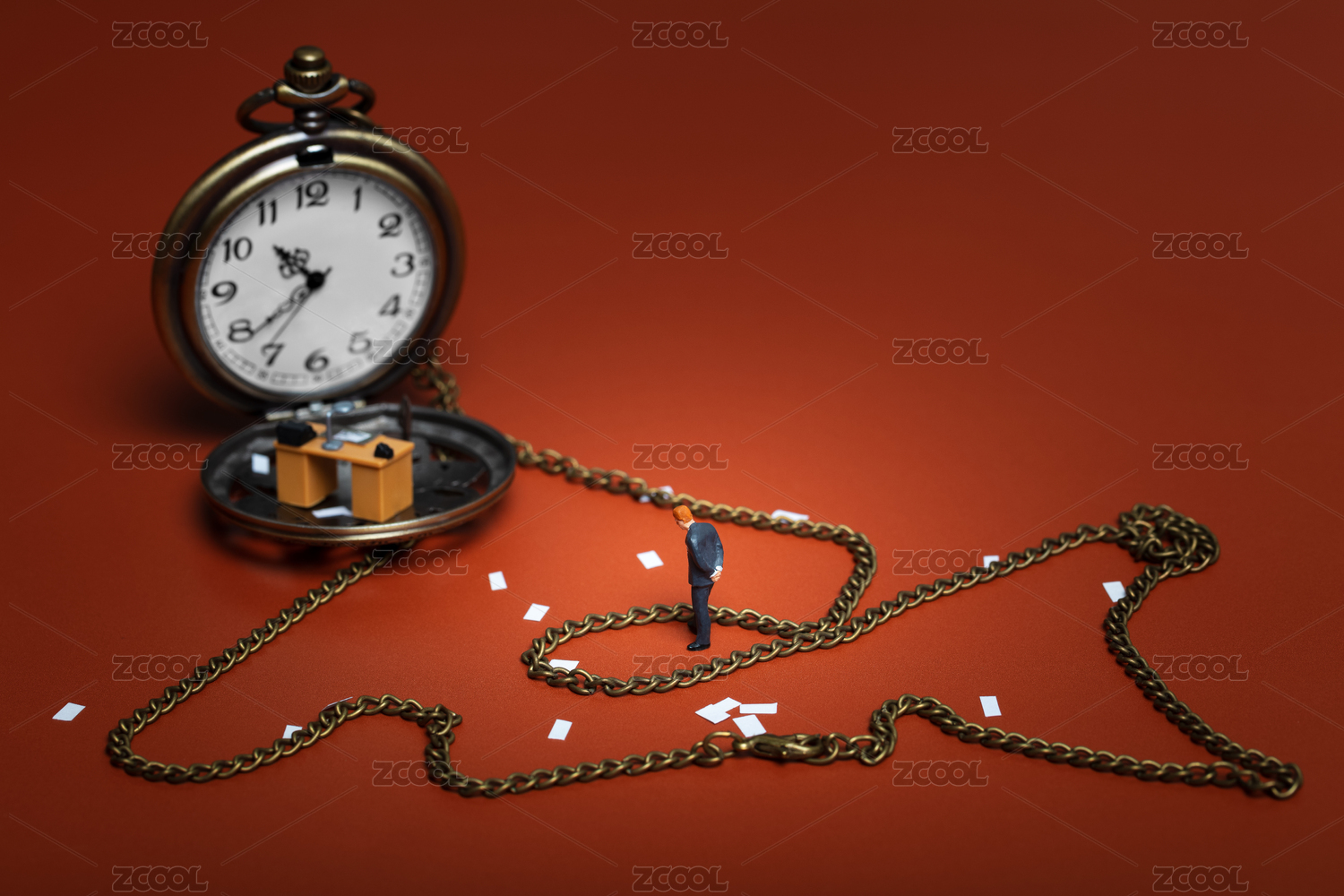 在懷表加班的上班族男性被鐵鏈?zhǔn)`