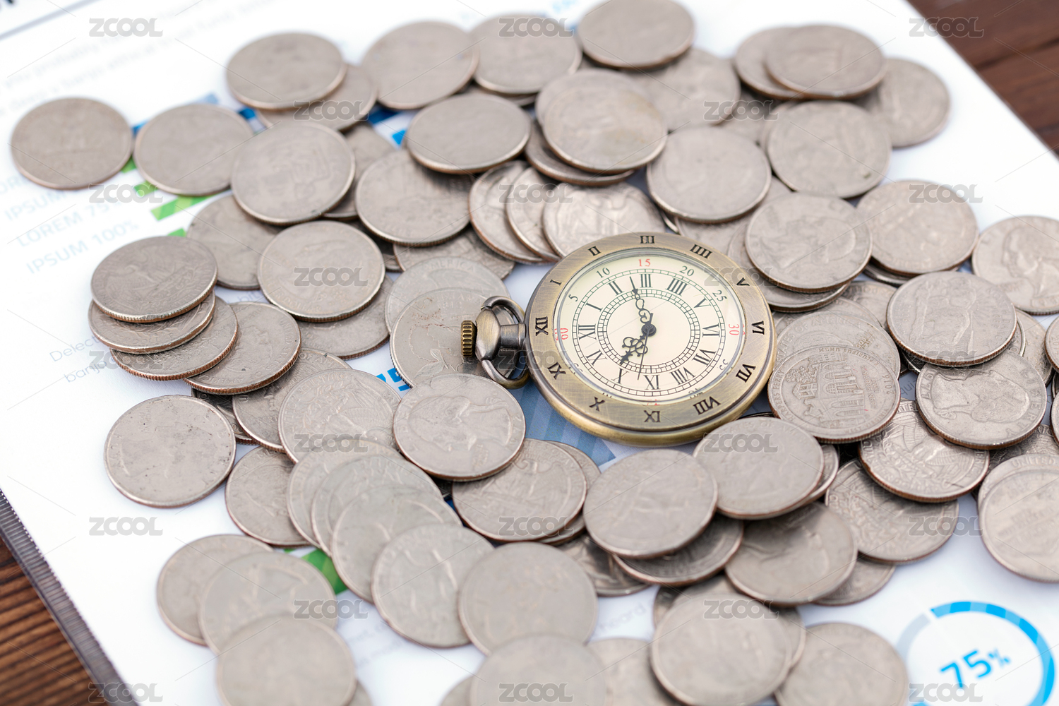 金融投資時(shí)間硬幣和懷表