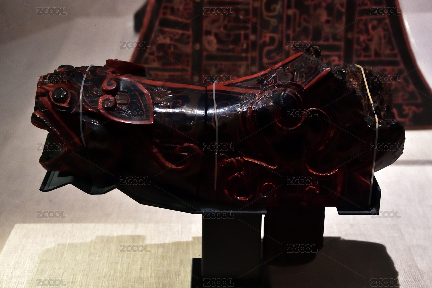 博物館里紅色漆器上的雕花