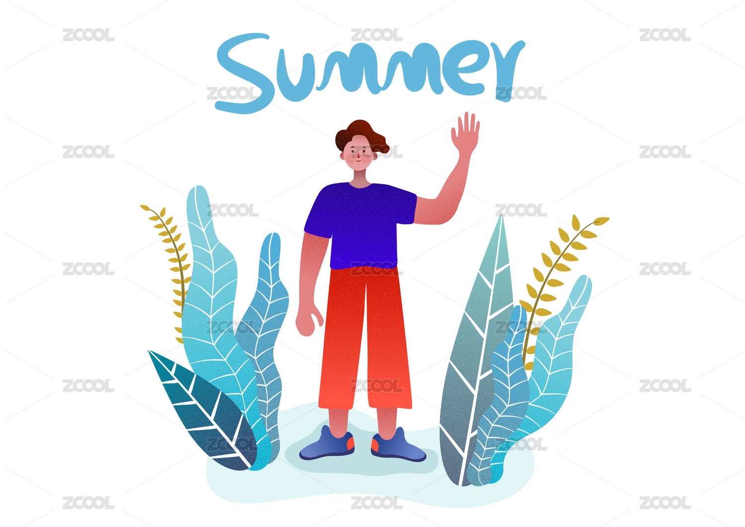 藍(lán)色漸變顆粒感植物花卉小清新背景