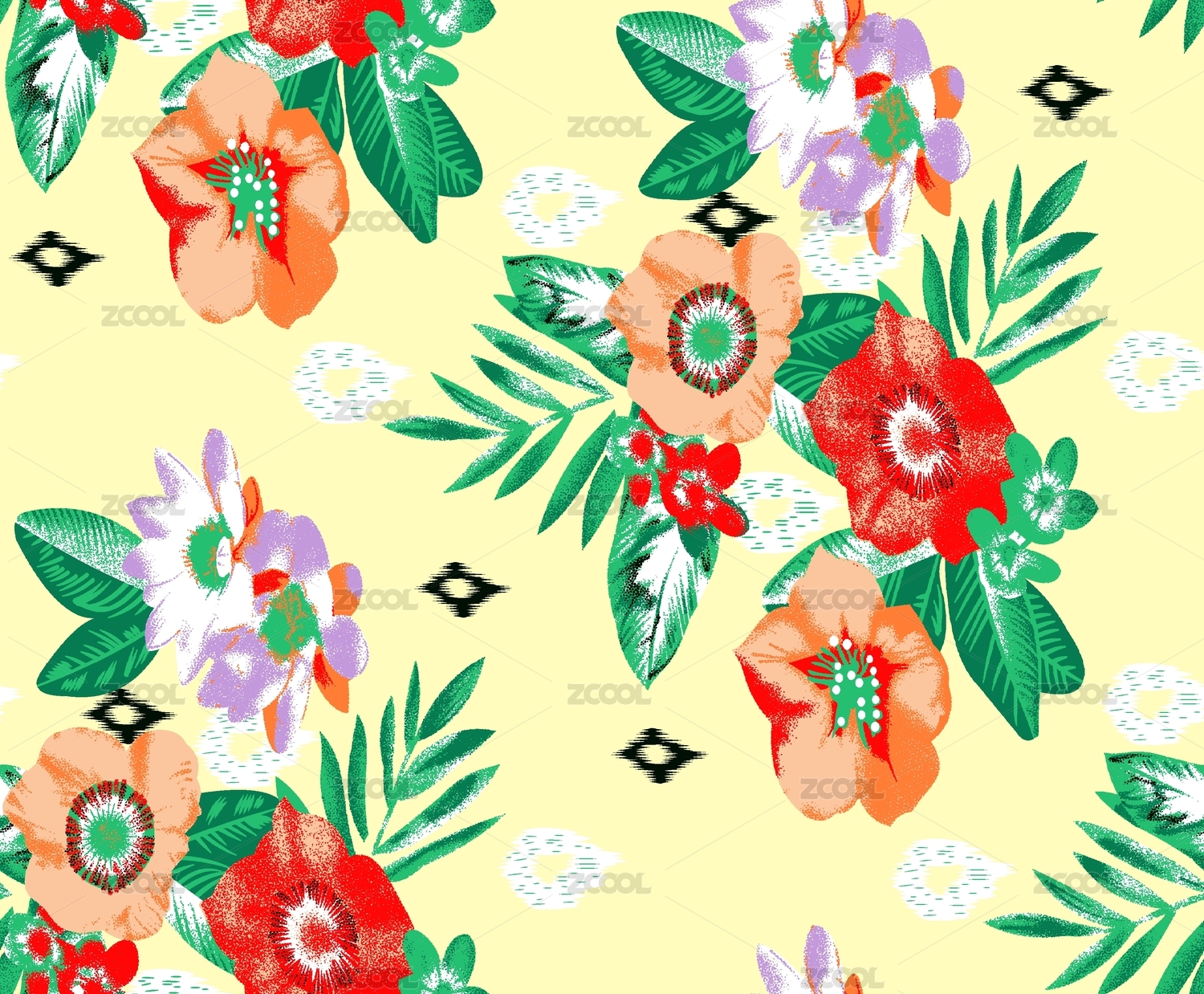 無(wú)縫圖案與鮮艷的花朵服裝紡織品印花