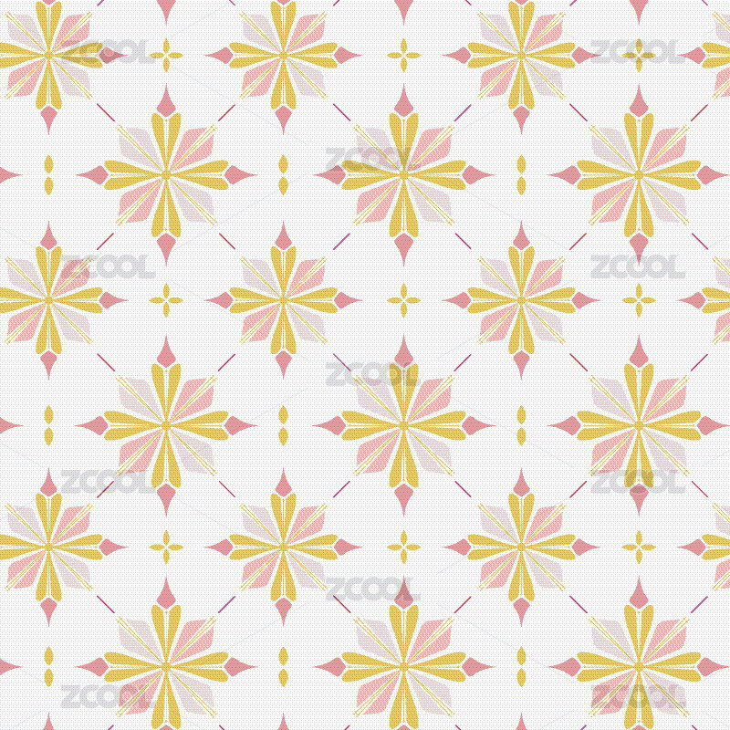 粉色與金色花朵幾何拼接無(wú)縫圖案