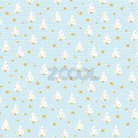 淡藍(lán)色背景圣誕樹(shù)與金色星星無(wú)縫圖案
