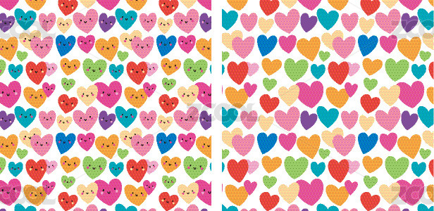 彩色愛(ài)心笑臉與純色愛(ài)心無(wú)縫圖案組合