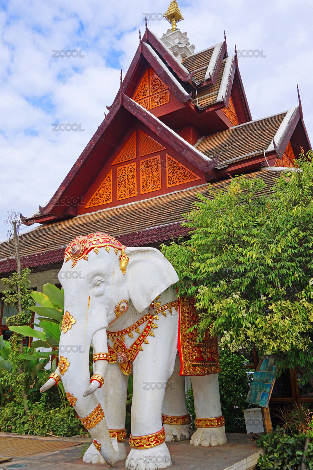 中國云南西雙版納景洪大金塔寺大象雕塑
