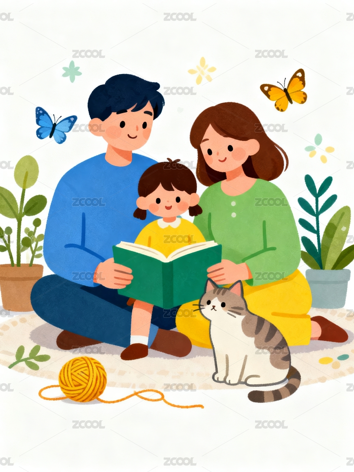 親子家庭溫馨居家共讀場(chǎng)景