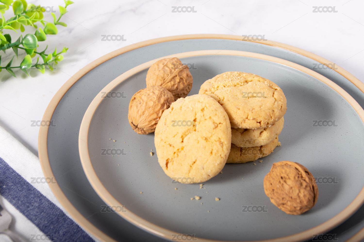 放在大理石桌面上的美味的核桃酥