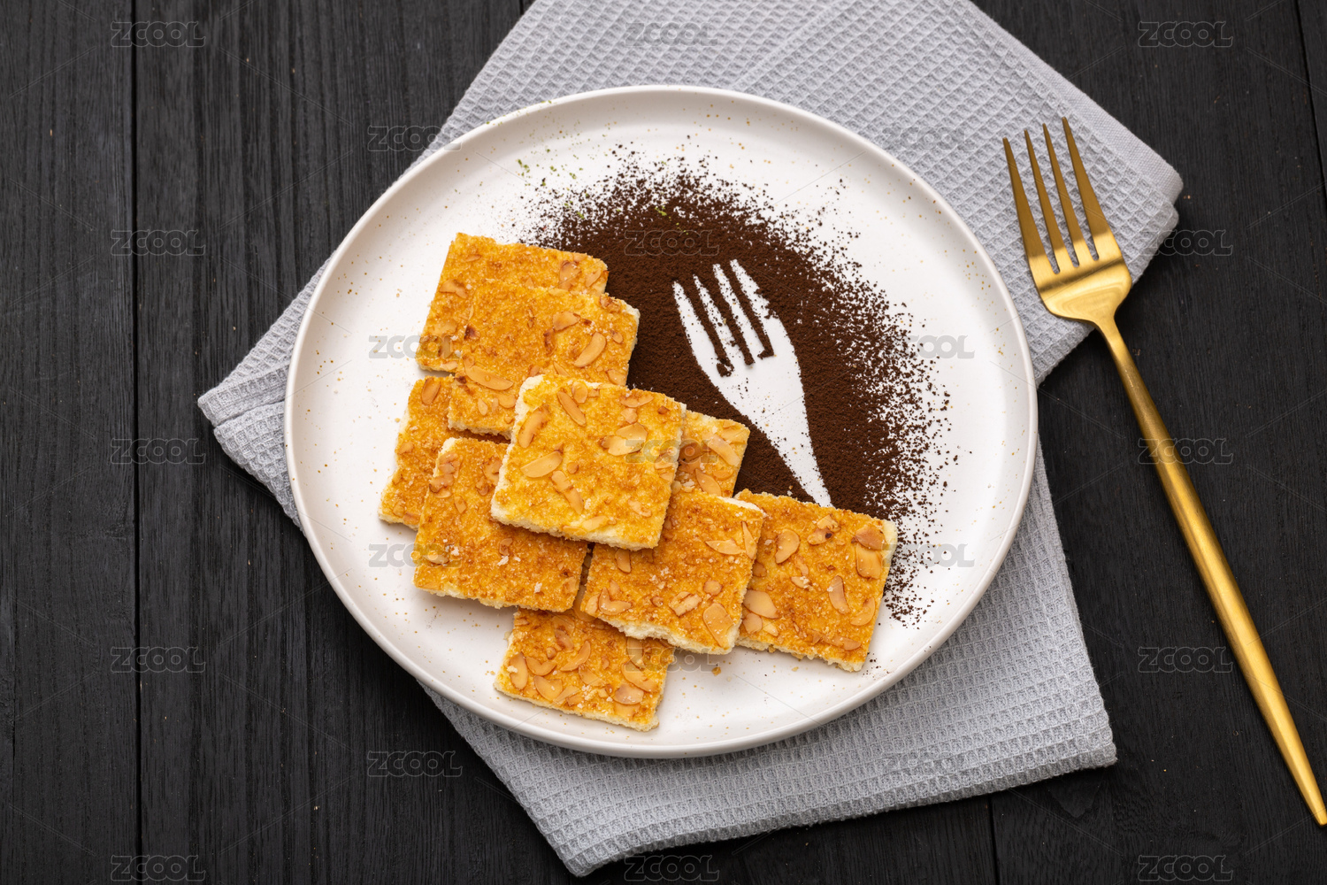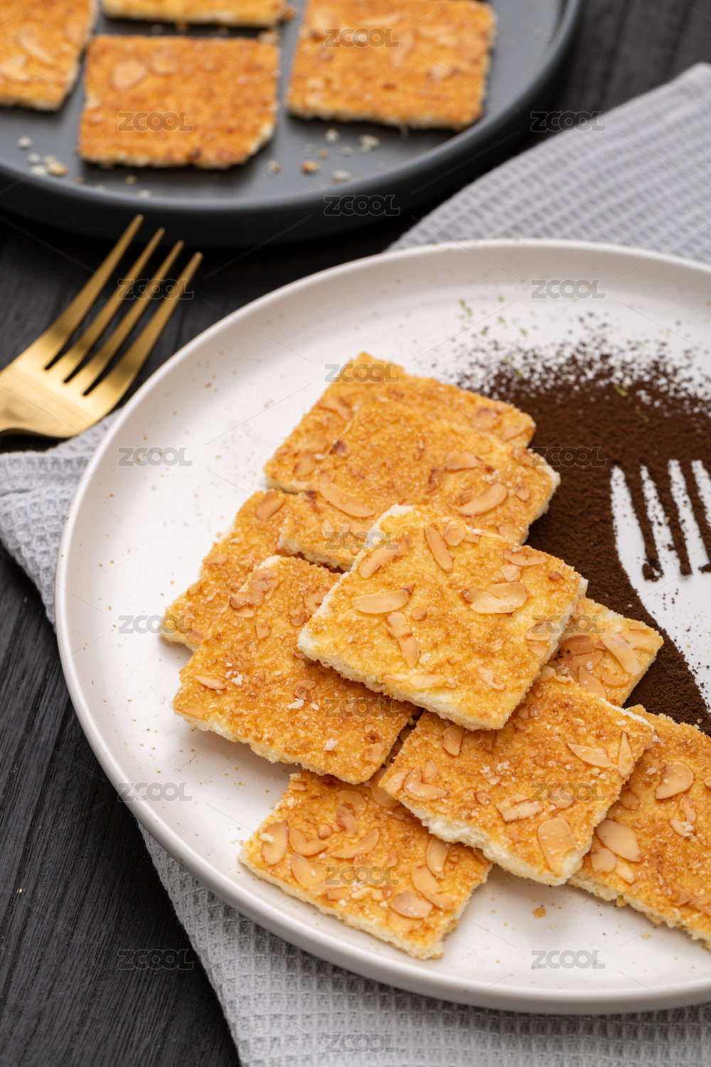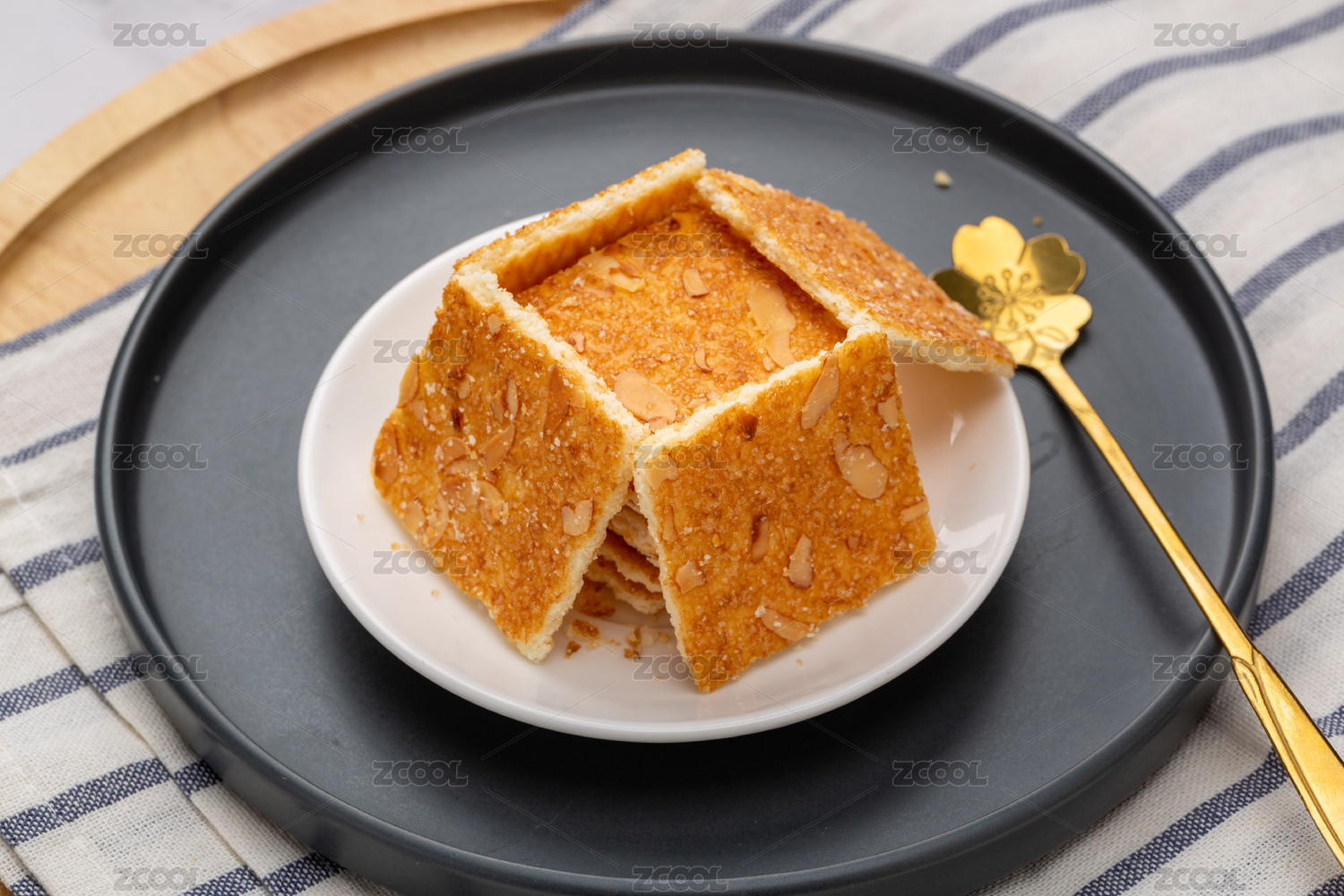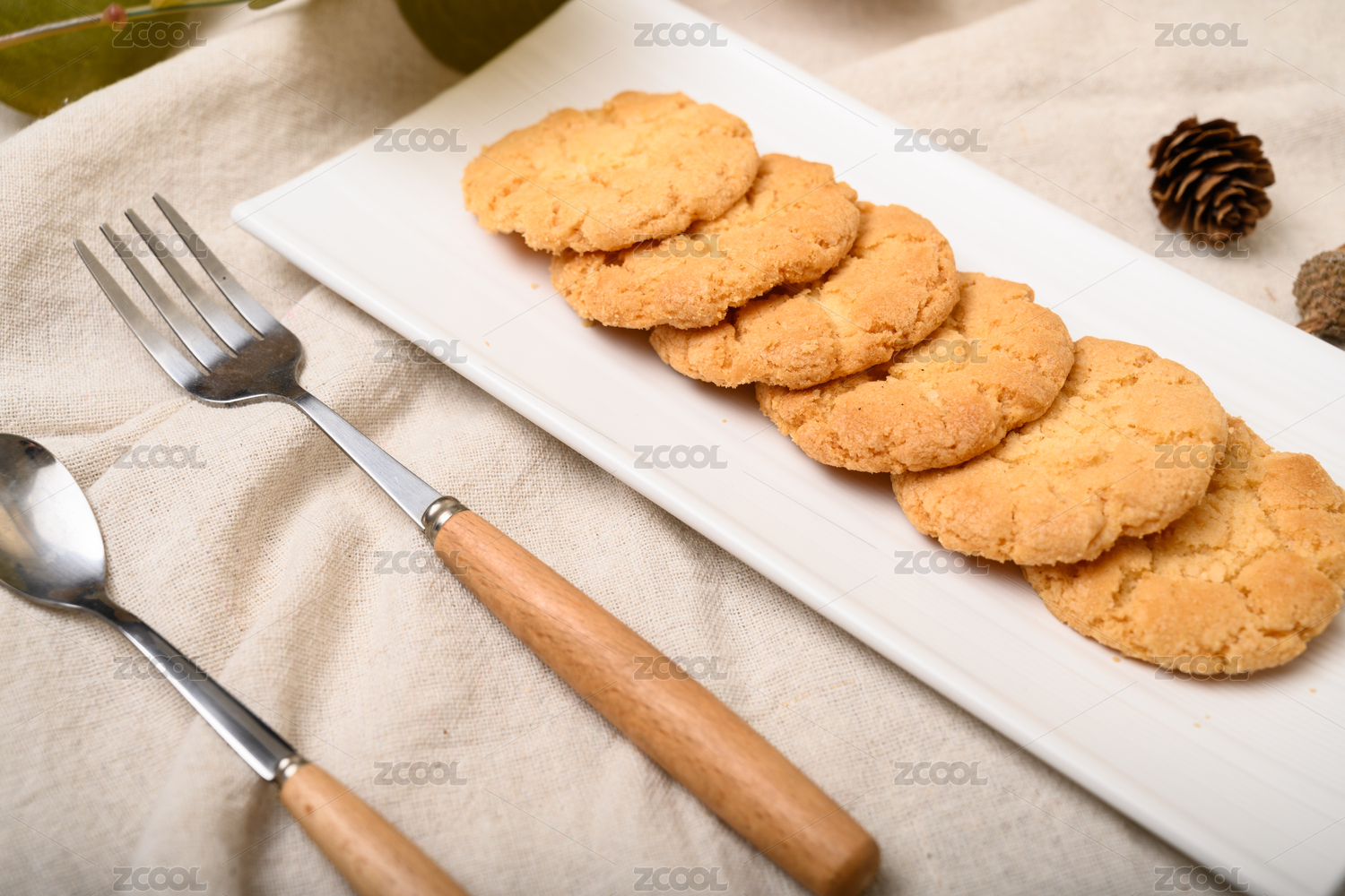 桌面上的白色陶瓷盤子里的核桃酥