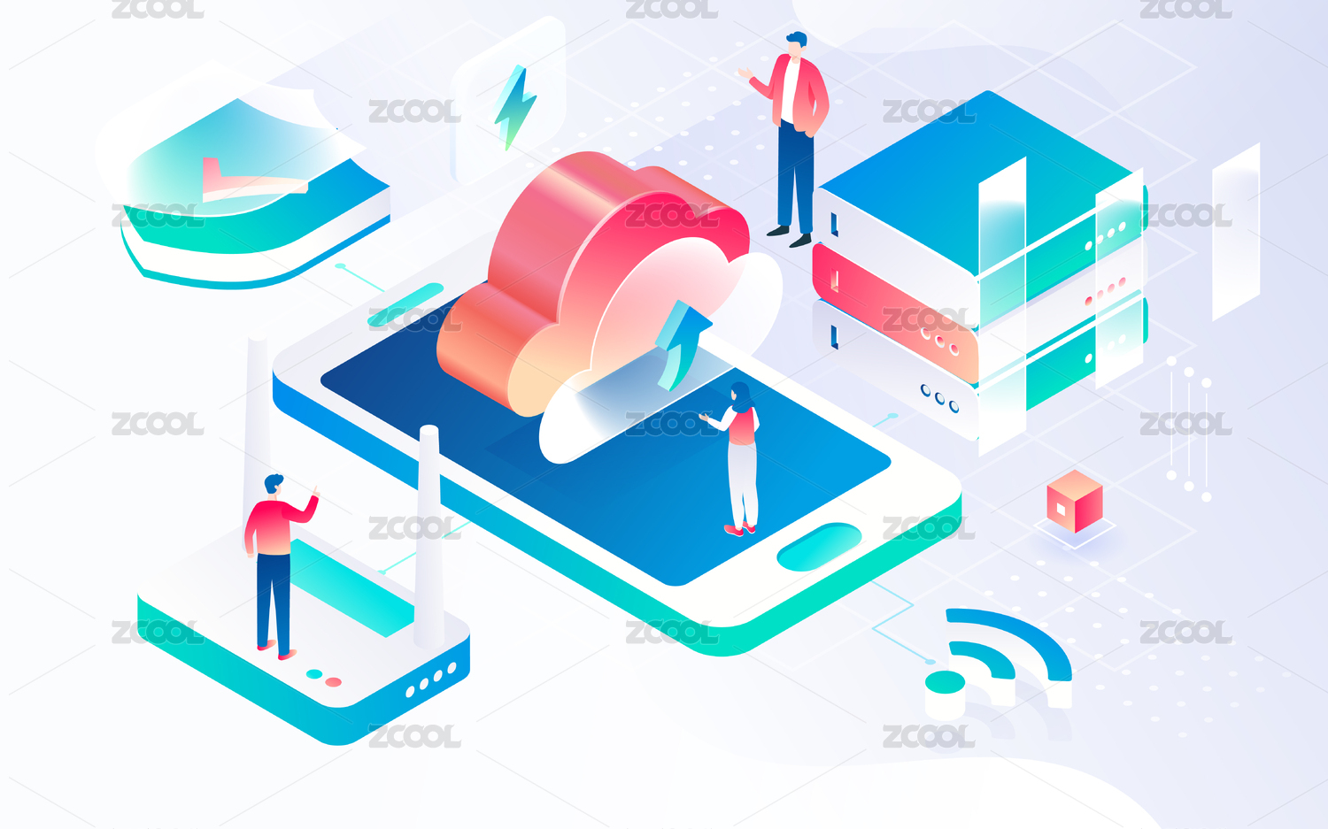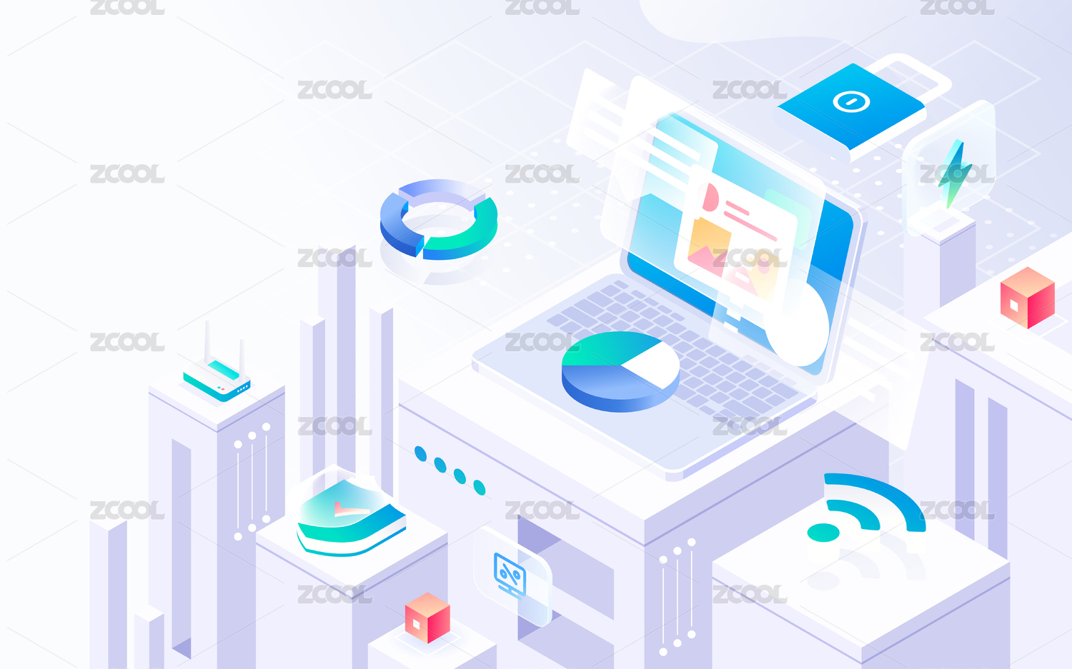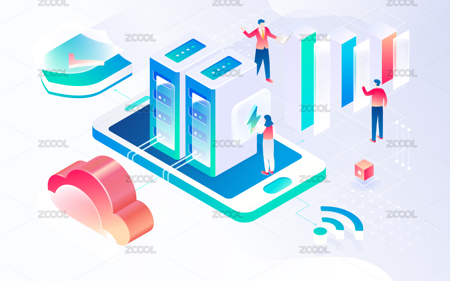 互聯(lián)網(wǎng)通信網(wǎng)絡(luò)連接數(shù)據(jù)安全分析等距插畫