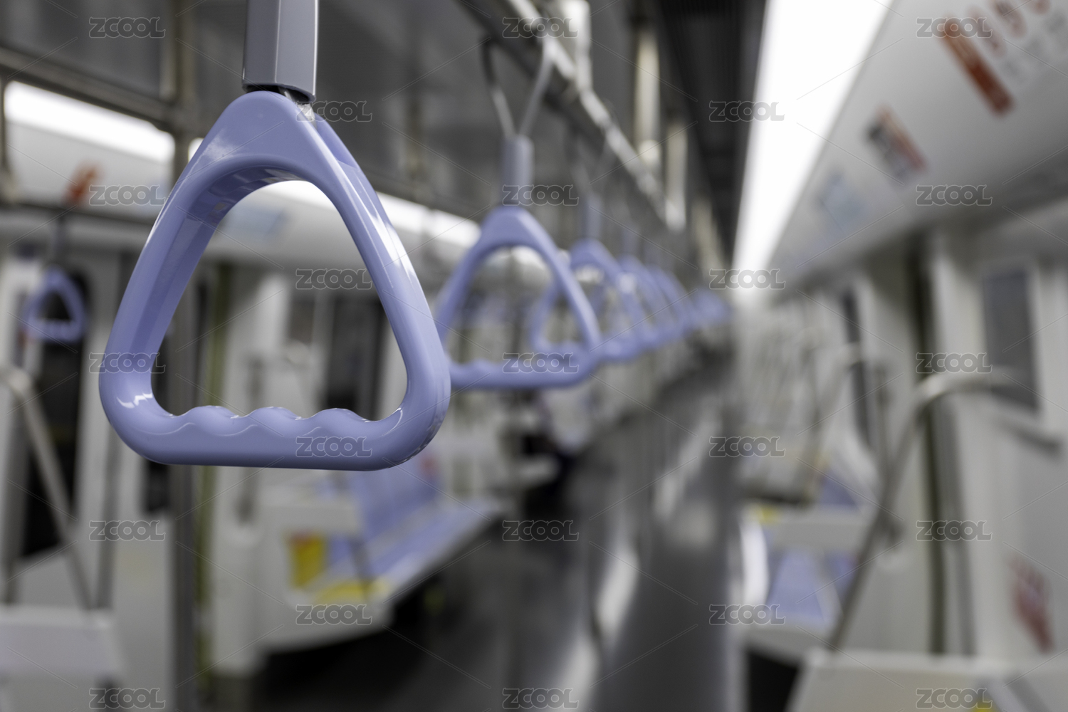 地鐵車(chē)廂里的乘客拉手環(huán)