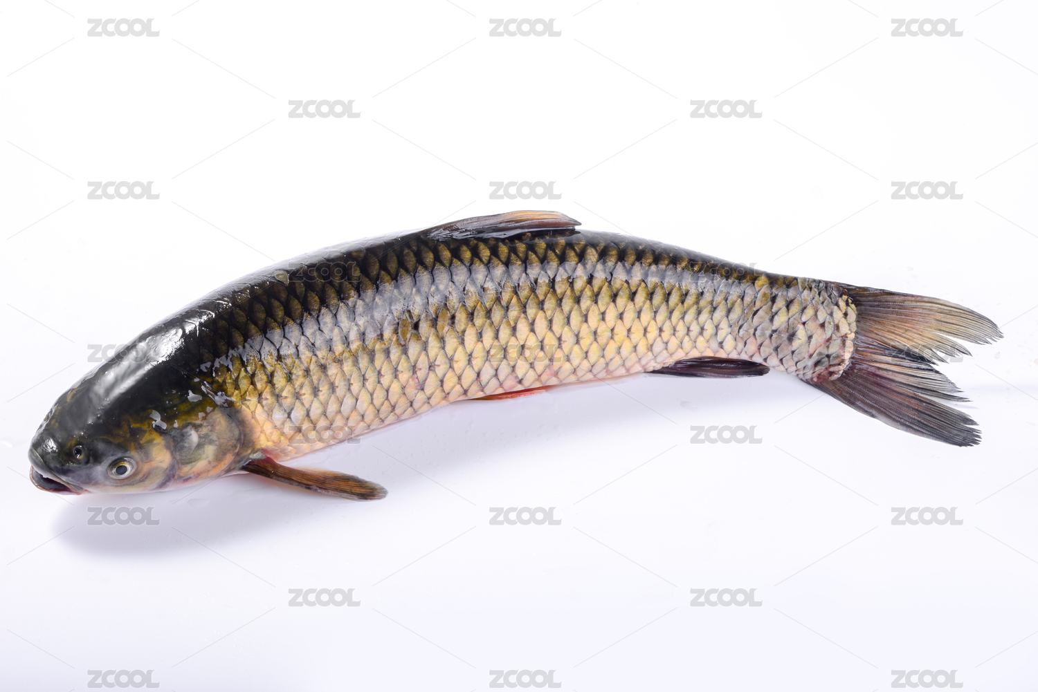 白色背景上的一條草魚
