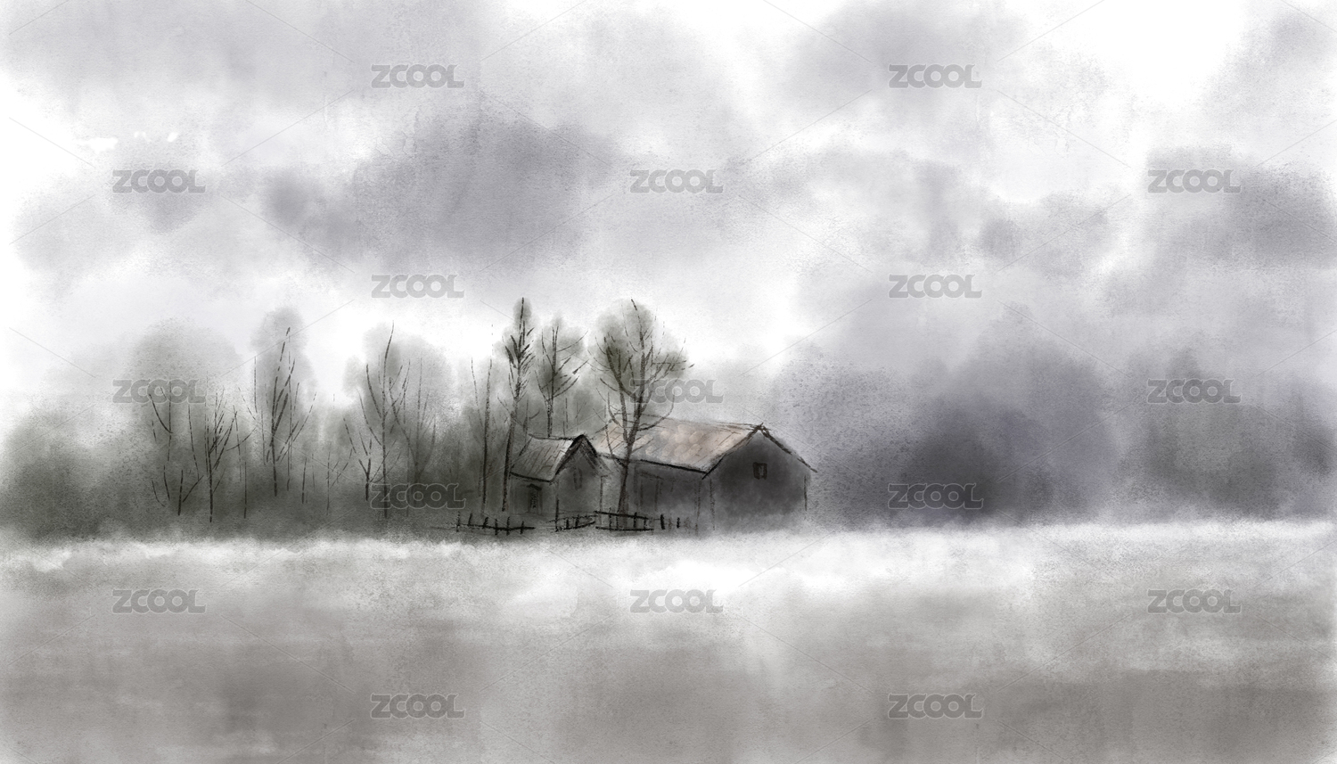 中國(guó)風(fēng)山水風(fēng)景畫(huà)壁紙背景