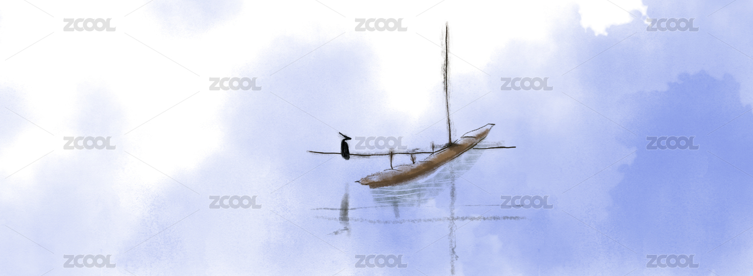 手繪插畫(huà)山水風(fēng)景漁船小舟