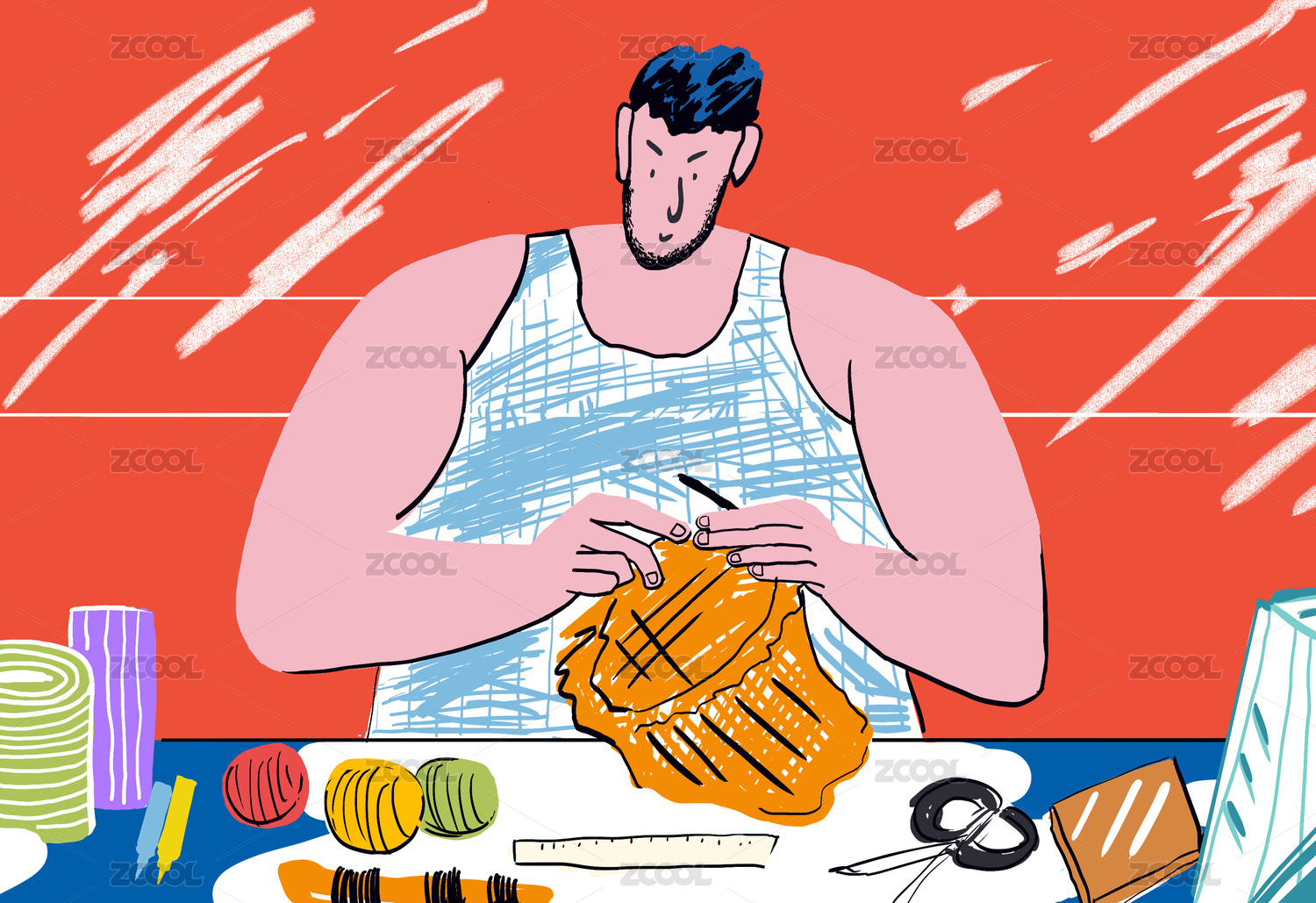 一個(gè)織毛衣的男生