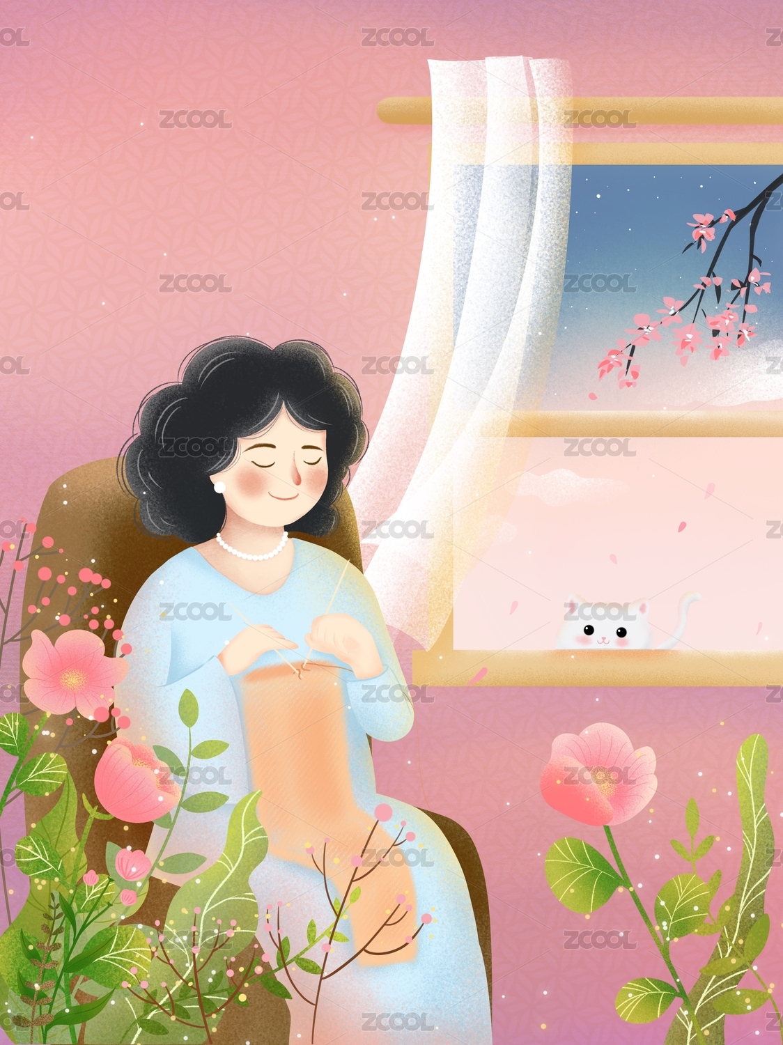 母親節(jié)母親在織毛衣