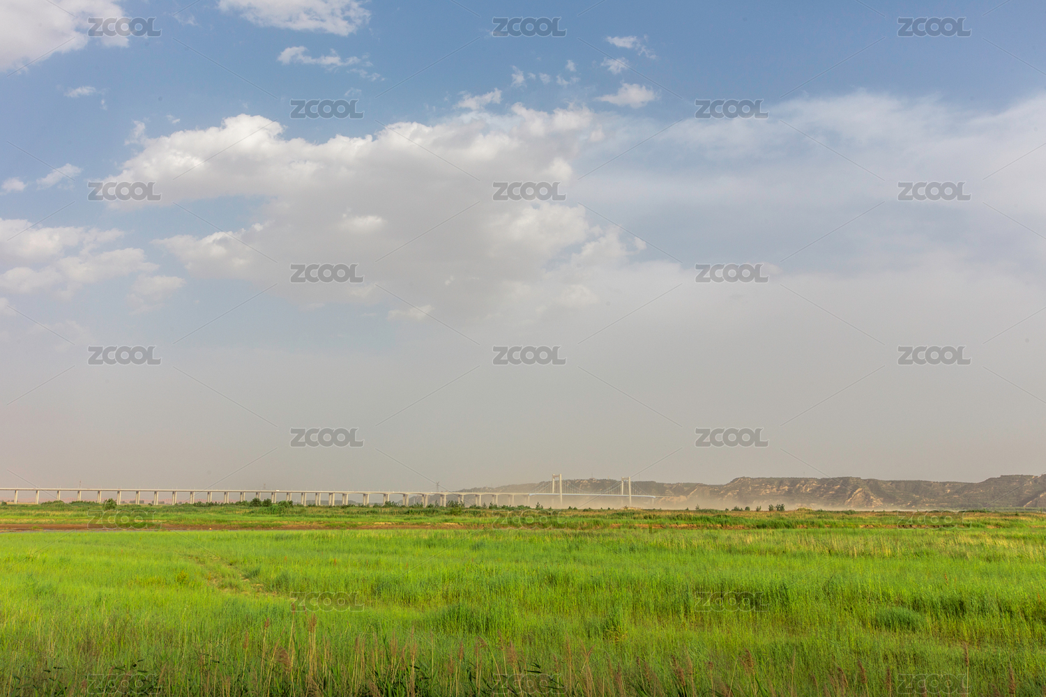 亞洲中國河南省鄭州市晴朗的夏季黃河灘風(fēng)景