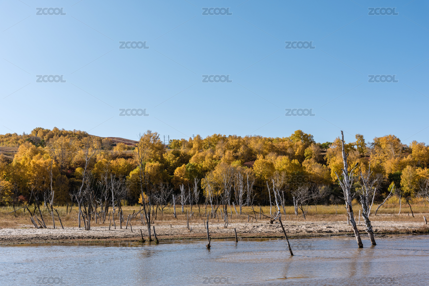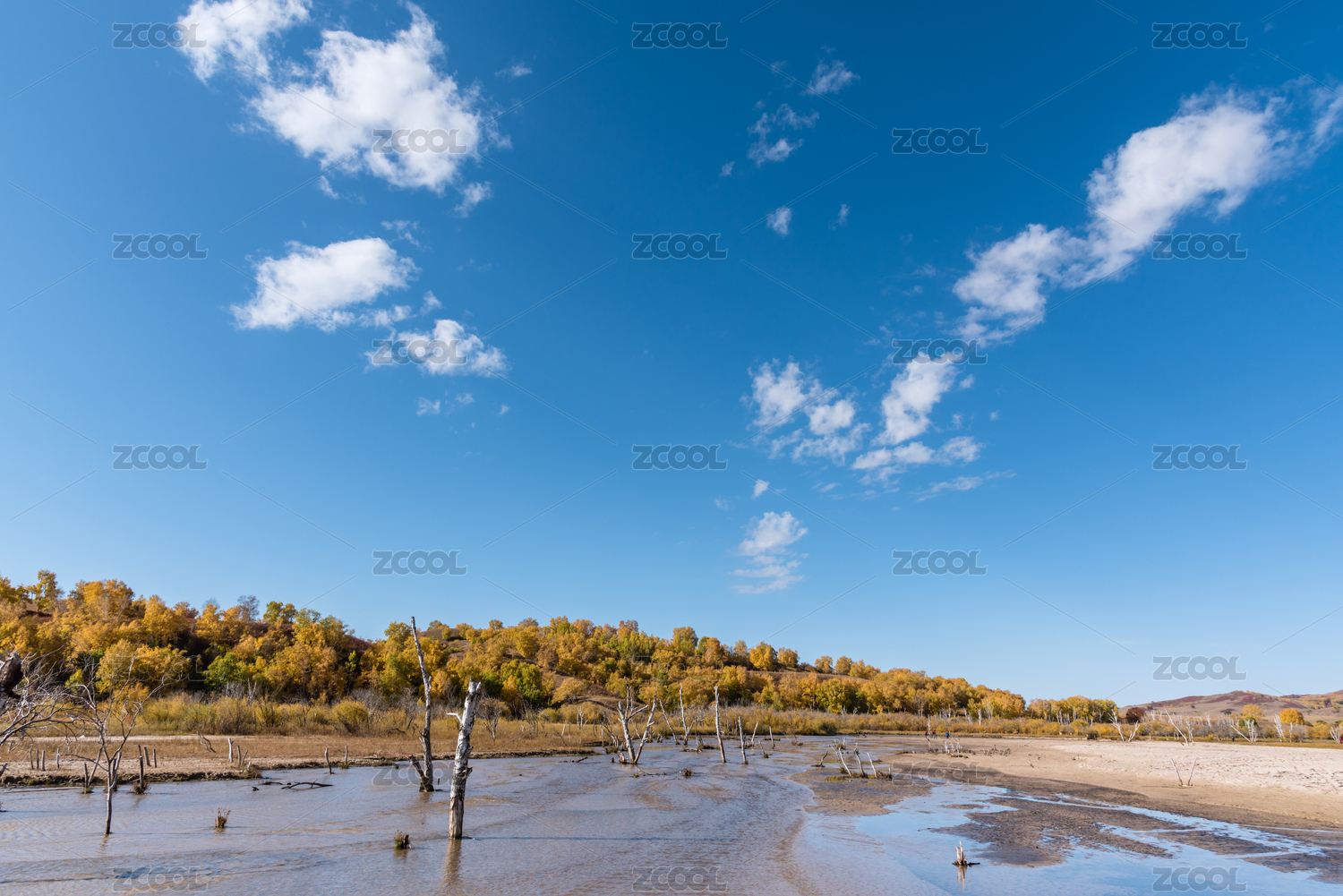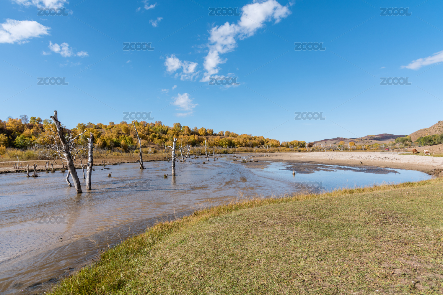 秋天內(nèi)蒙古赤峰壩上草原的河灘濕地和樹林