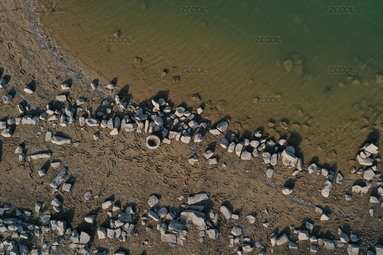 河灘上雜亂的石頭航拍俯視景觀