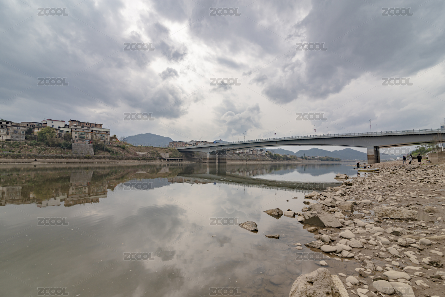 汀江上杭段的河灘及橋梁,中國福建