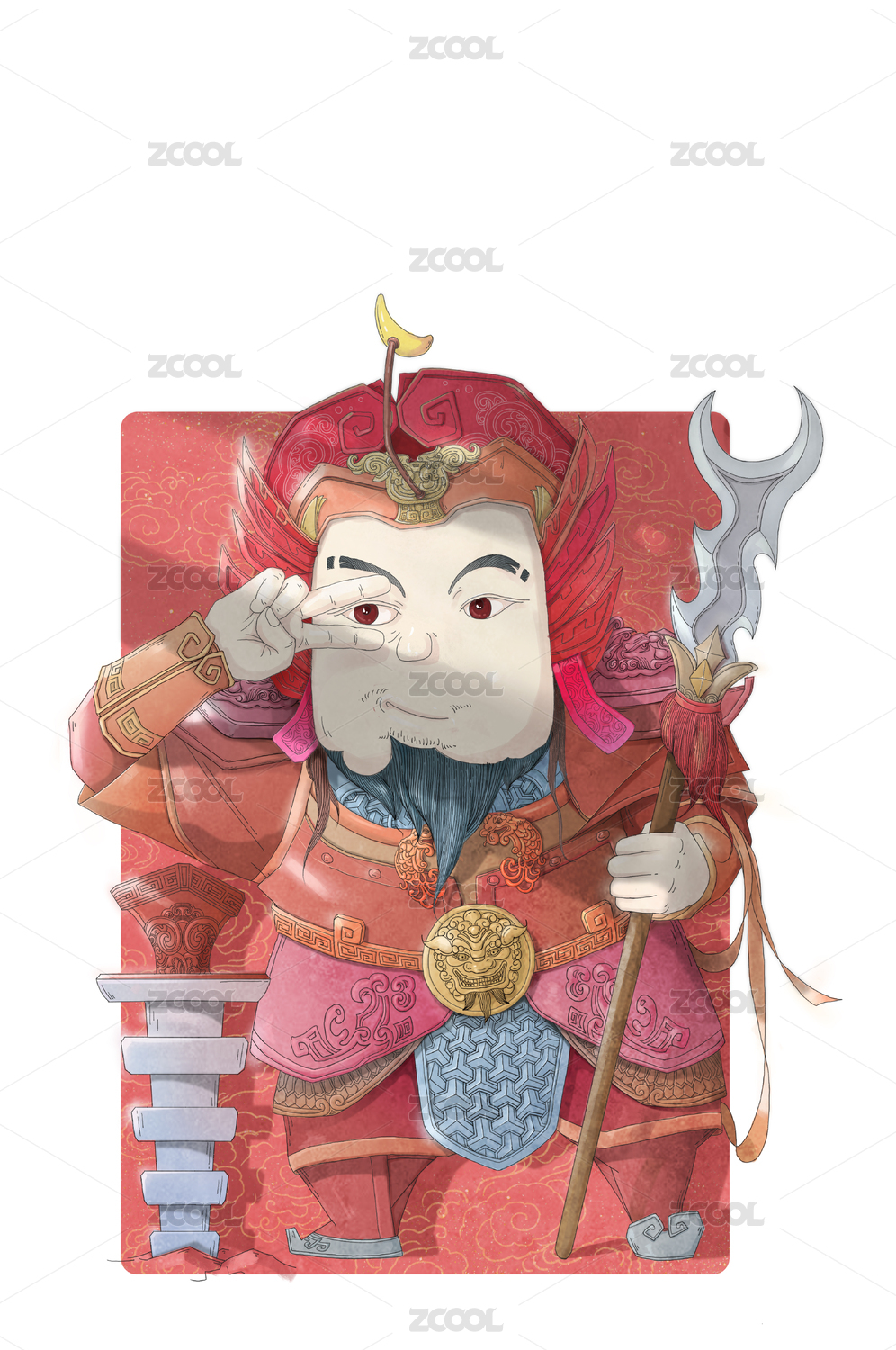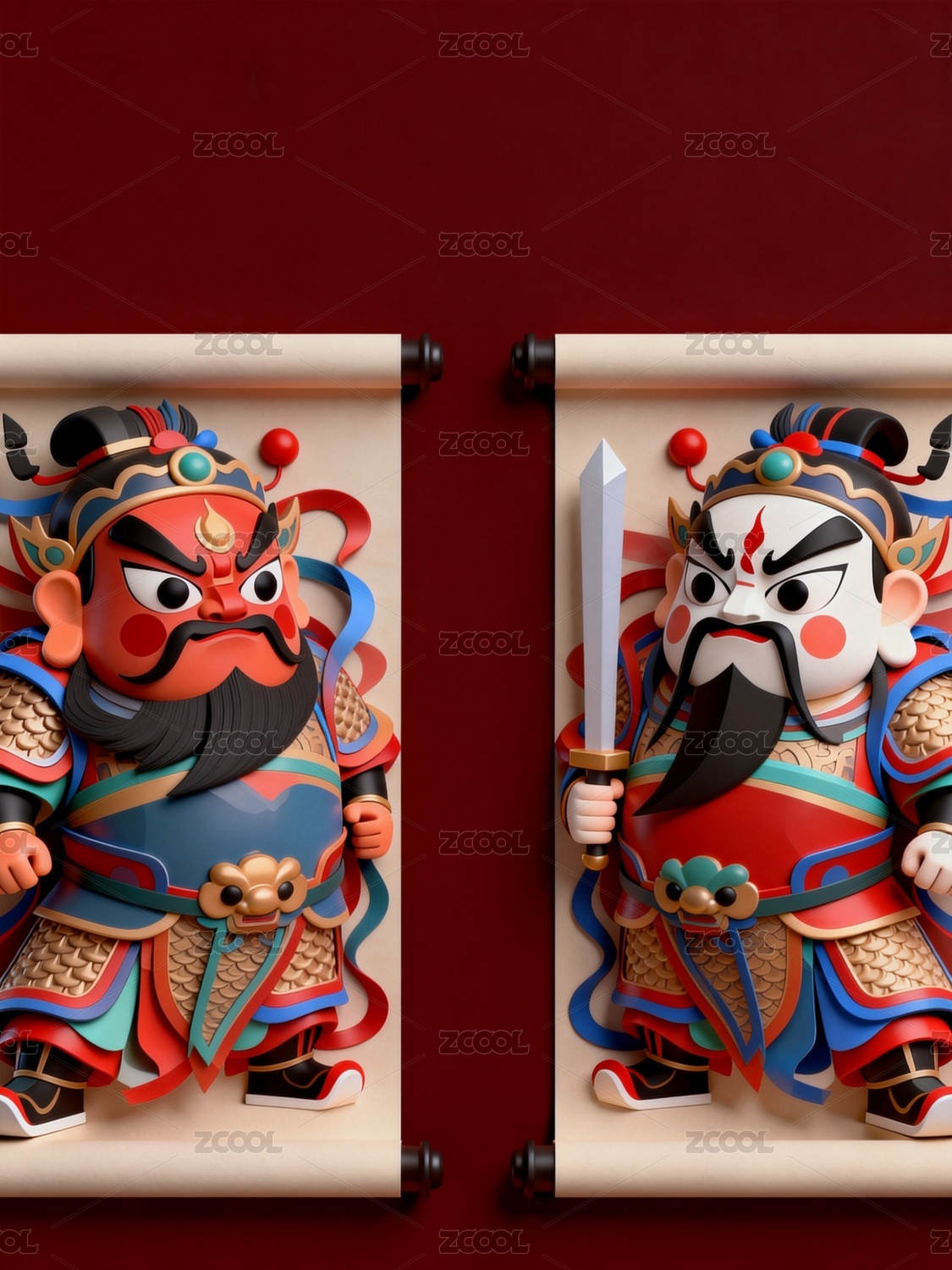 3D渲染神荼郁壘秦瓊尉遲恭門神年畫背景