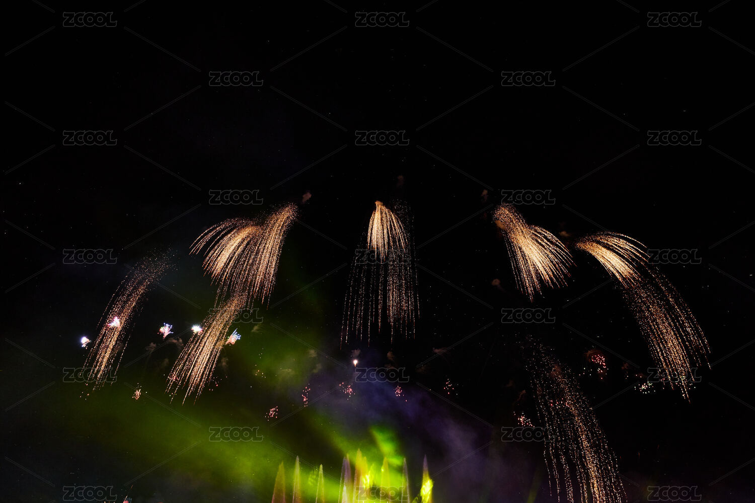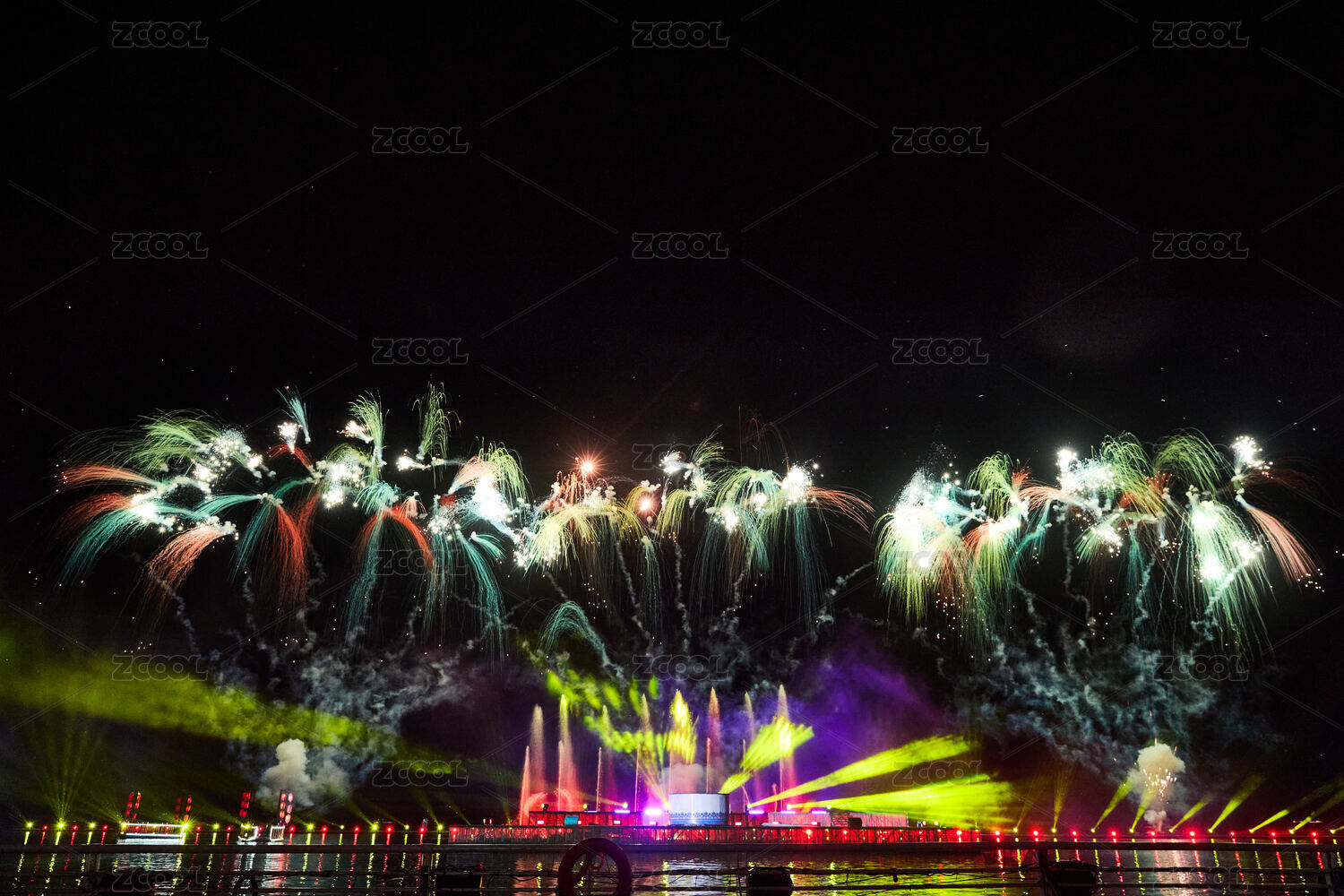 旅游景區(qū)湖面綻放的絢麗煙花禮花