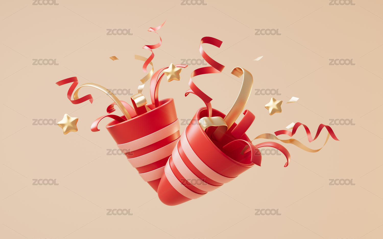炸開的禮花節(jié)日元素3D渲染