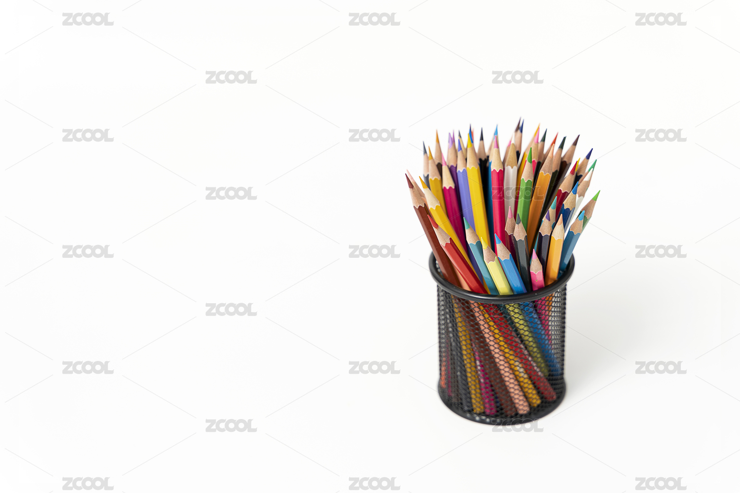 彩鉛筆筒白色背景圖