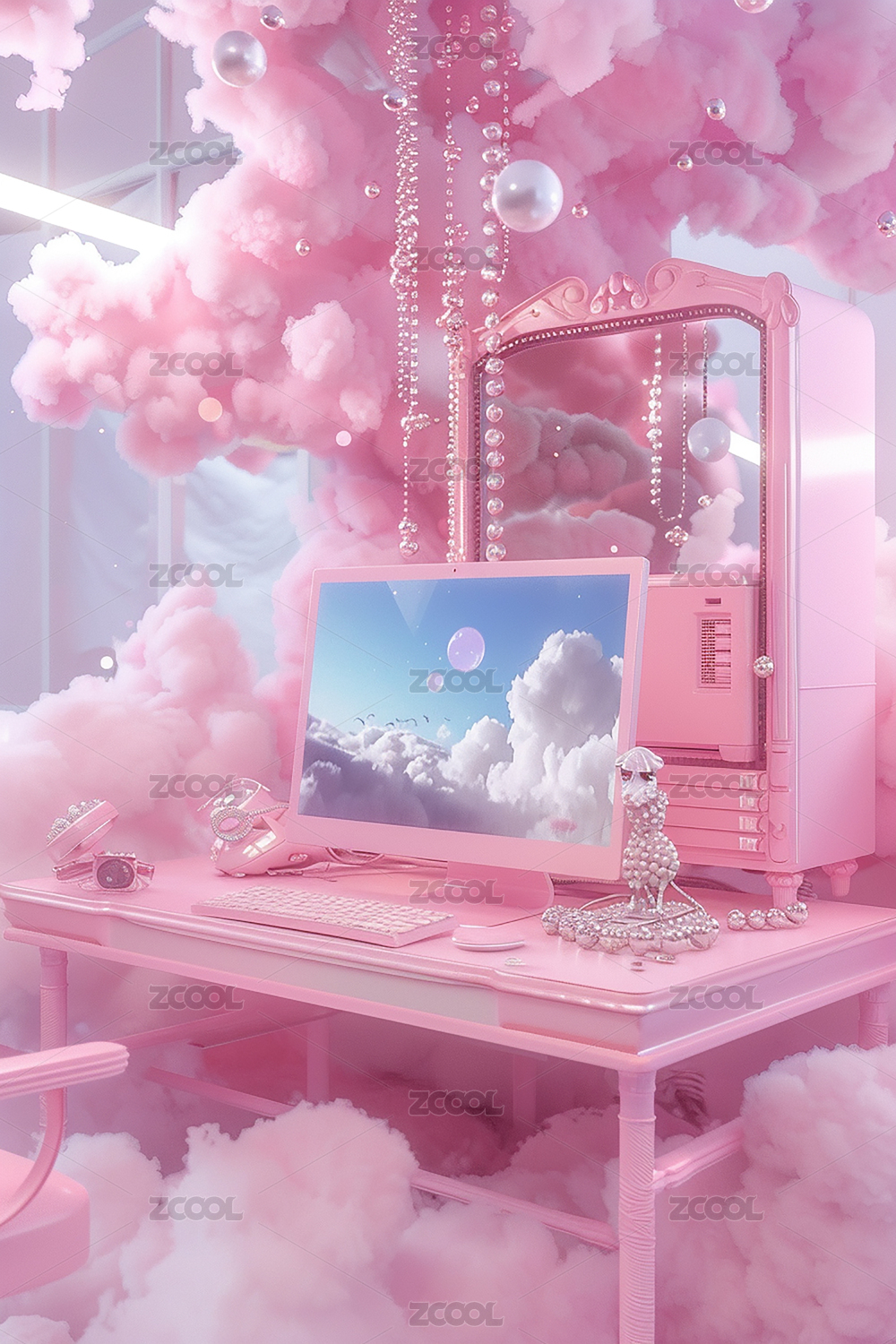 粉色藝術(shù)云朵科技
