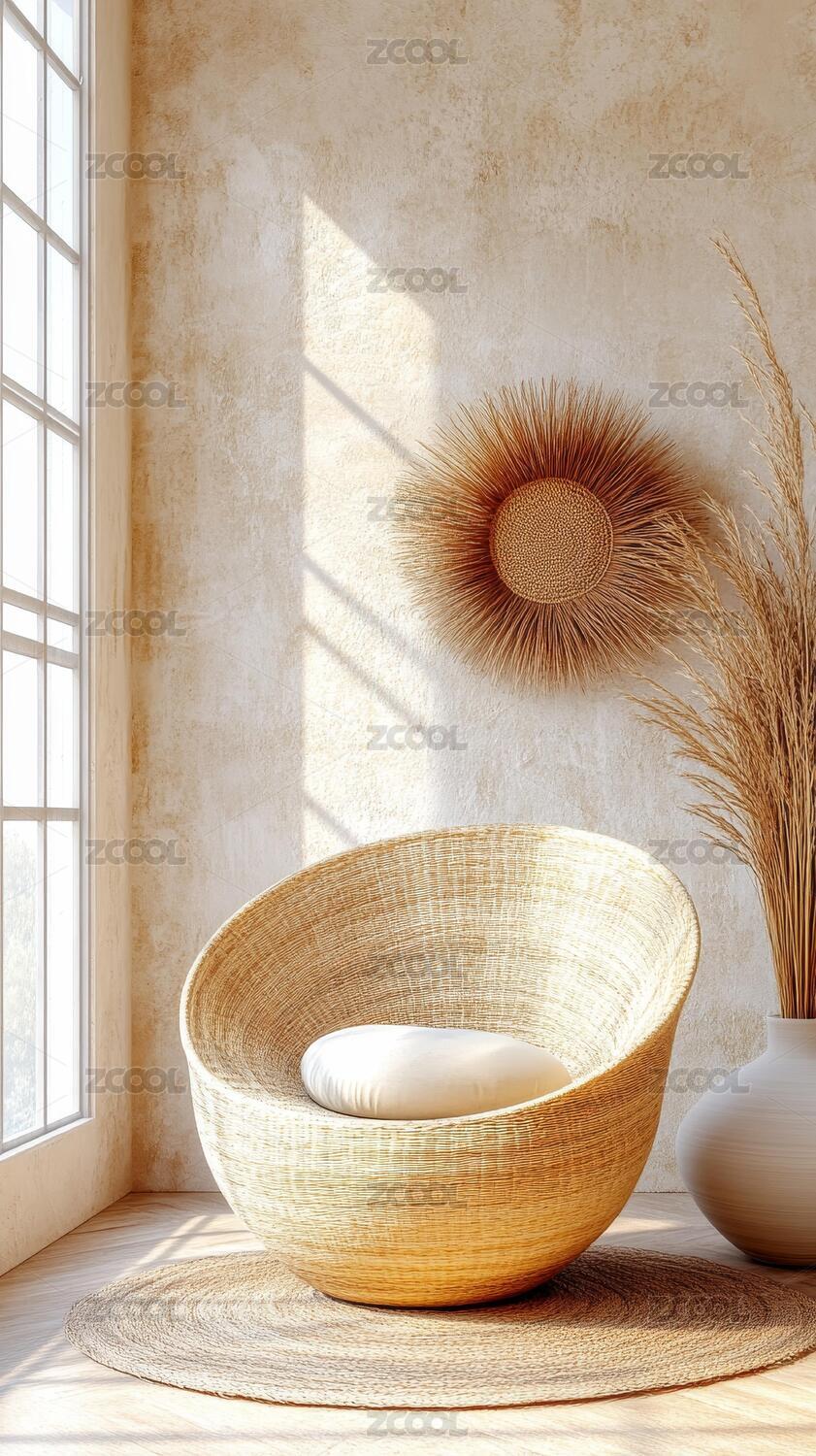簡約現(xiàn)代編織藤椅靜謐場景