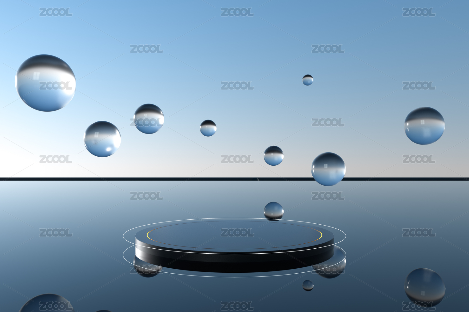 水面上的置物臺與創(chuàng)意風(fēng)格背景 3D渲染