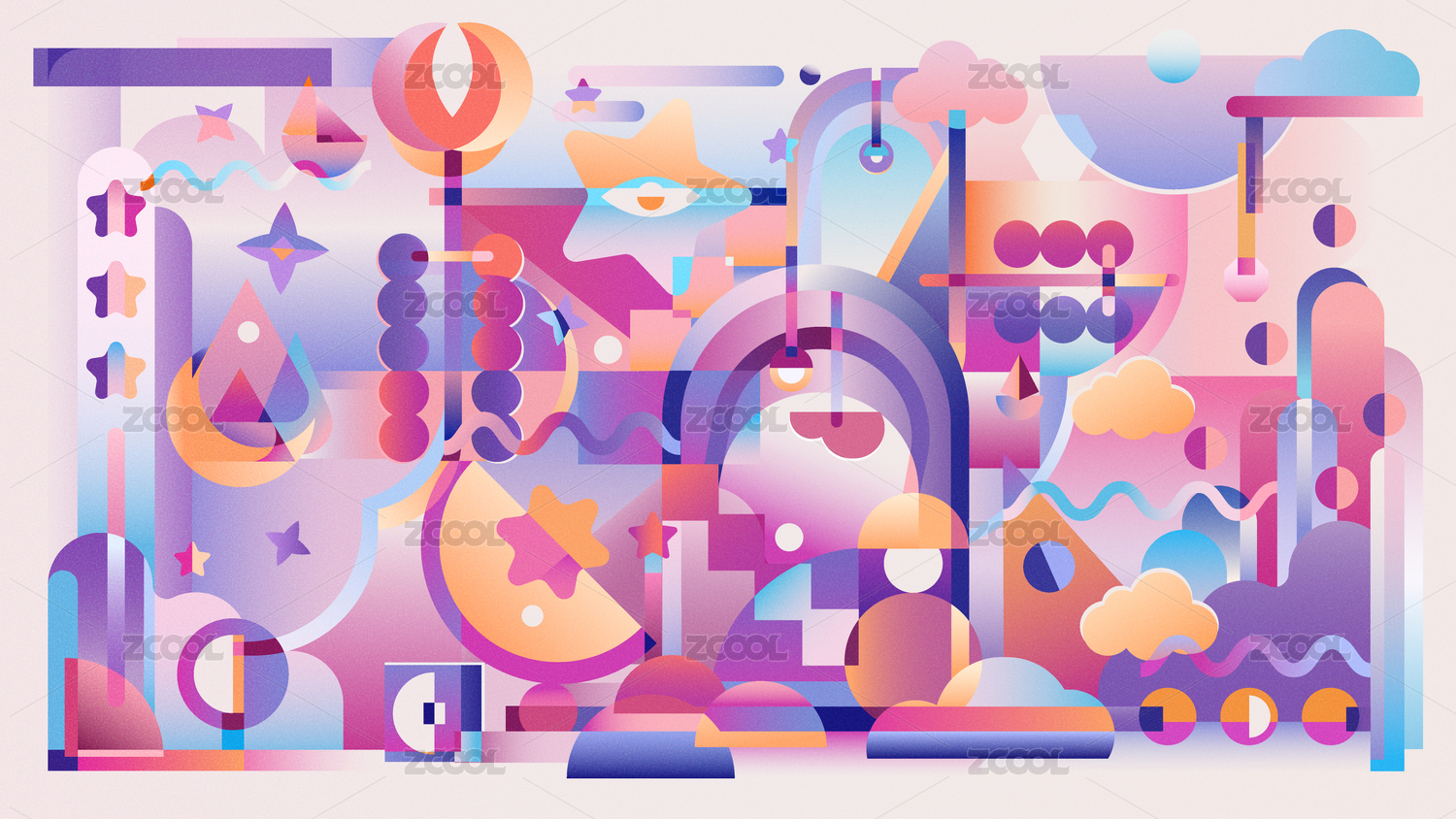 廣州城市非遺文化幾何創(chuàng)意插畫