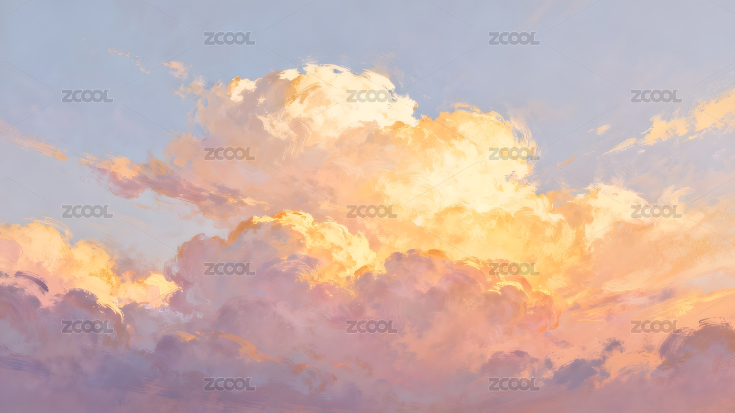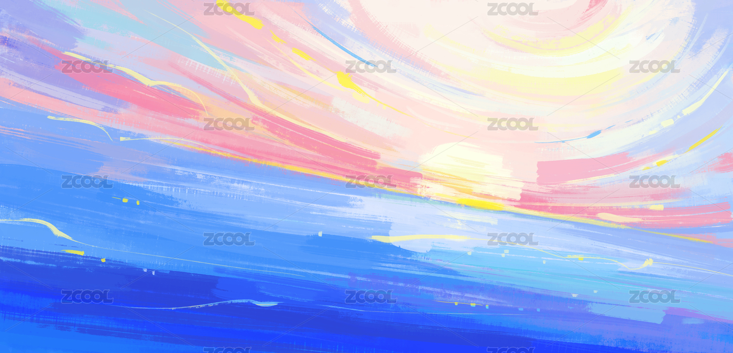 橙紅色的夕陽下,藍(lán)色的海面上飄著一艘小船,唯美的油畫質(zhì)感的炫彩治愈插畫