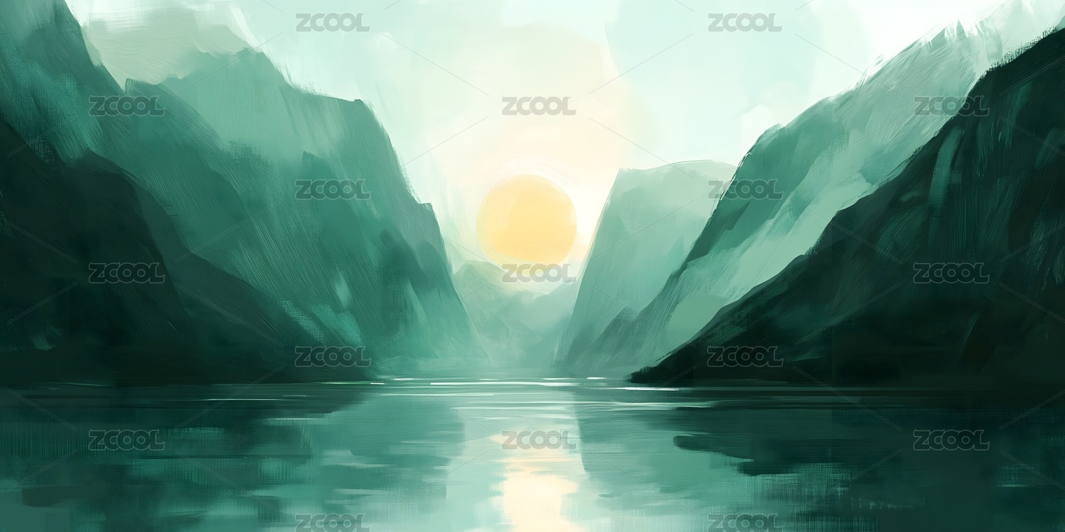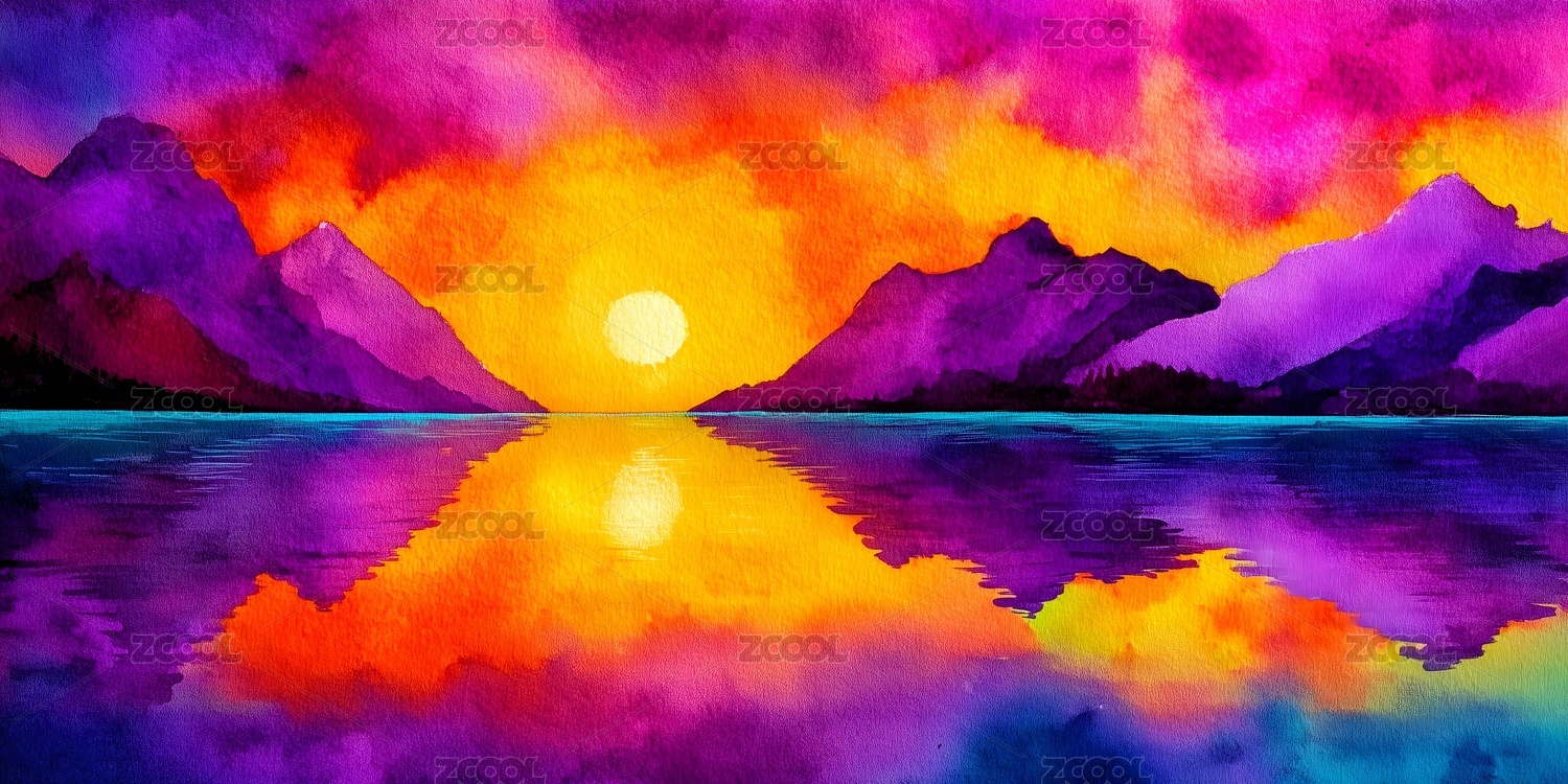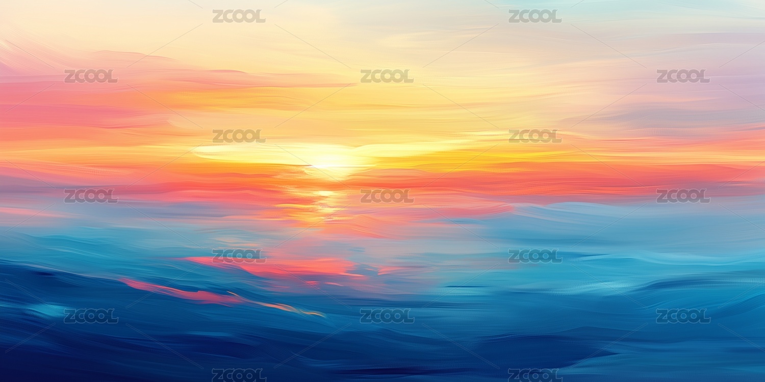 抽象大海夕陽油畫寫意色塊裝飾畫