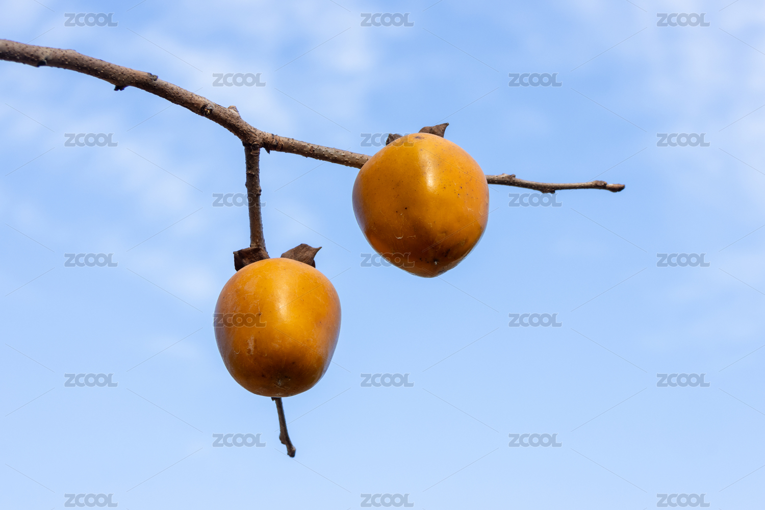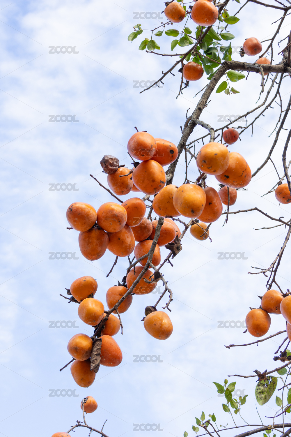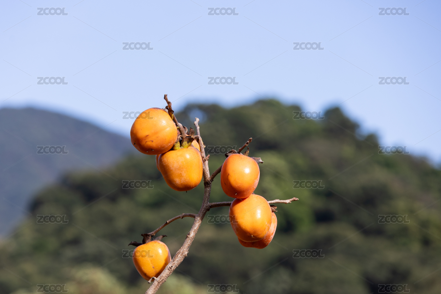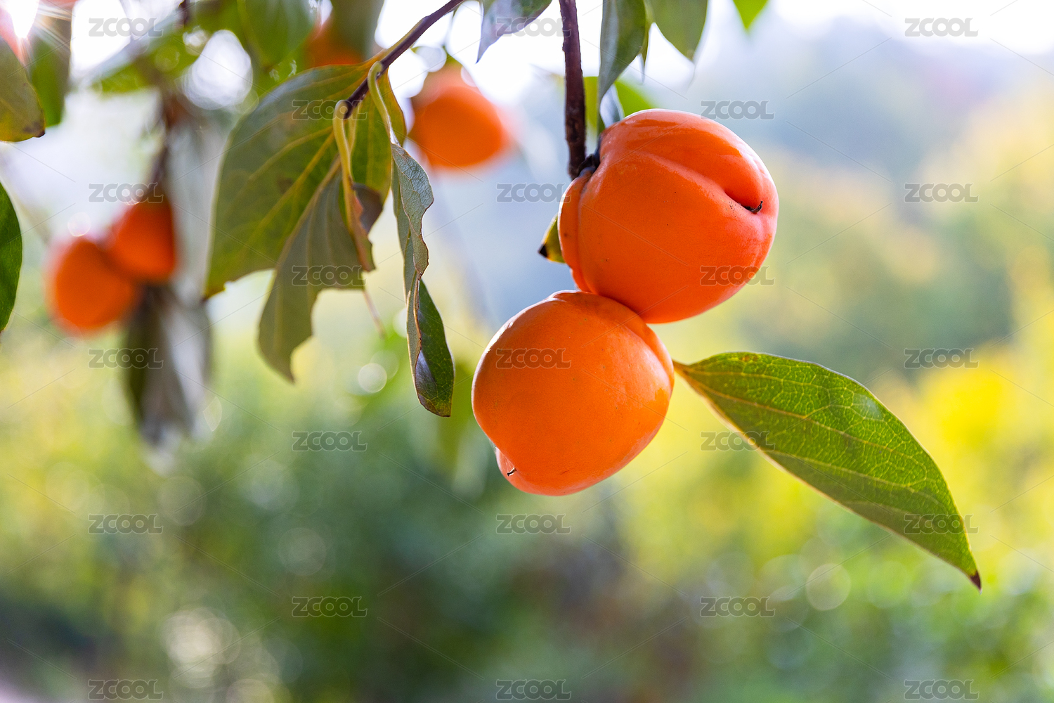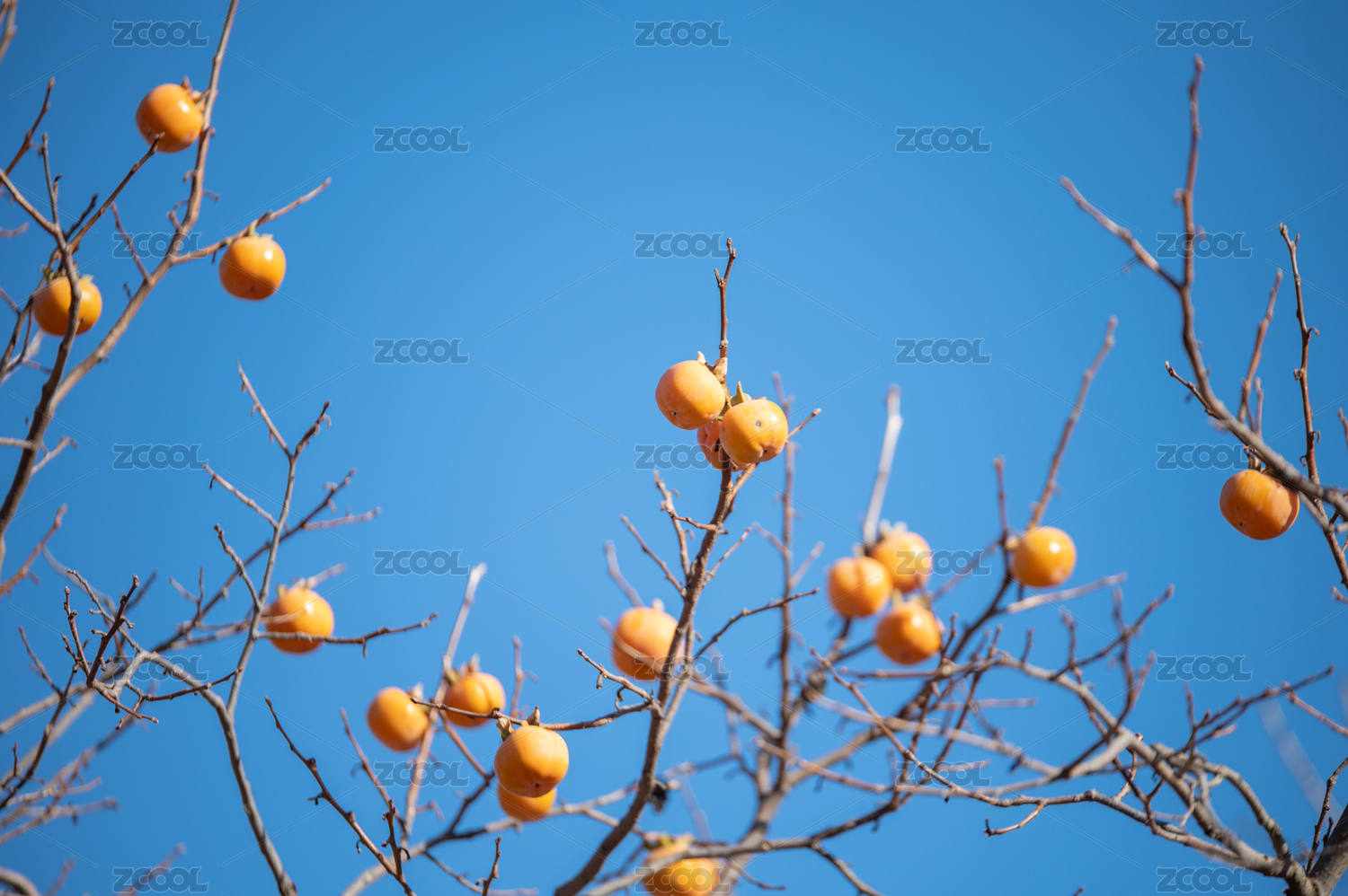 秋天的柿子樹枝頭掛滿成熟的紅柿子