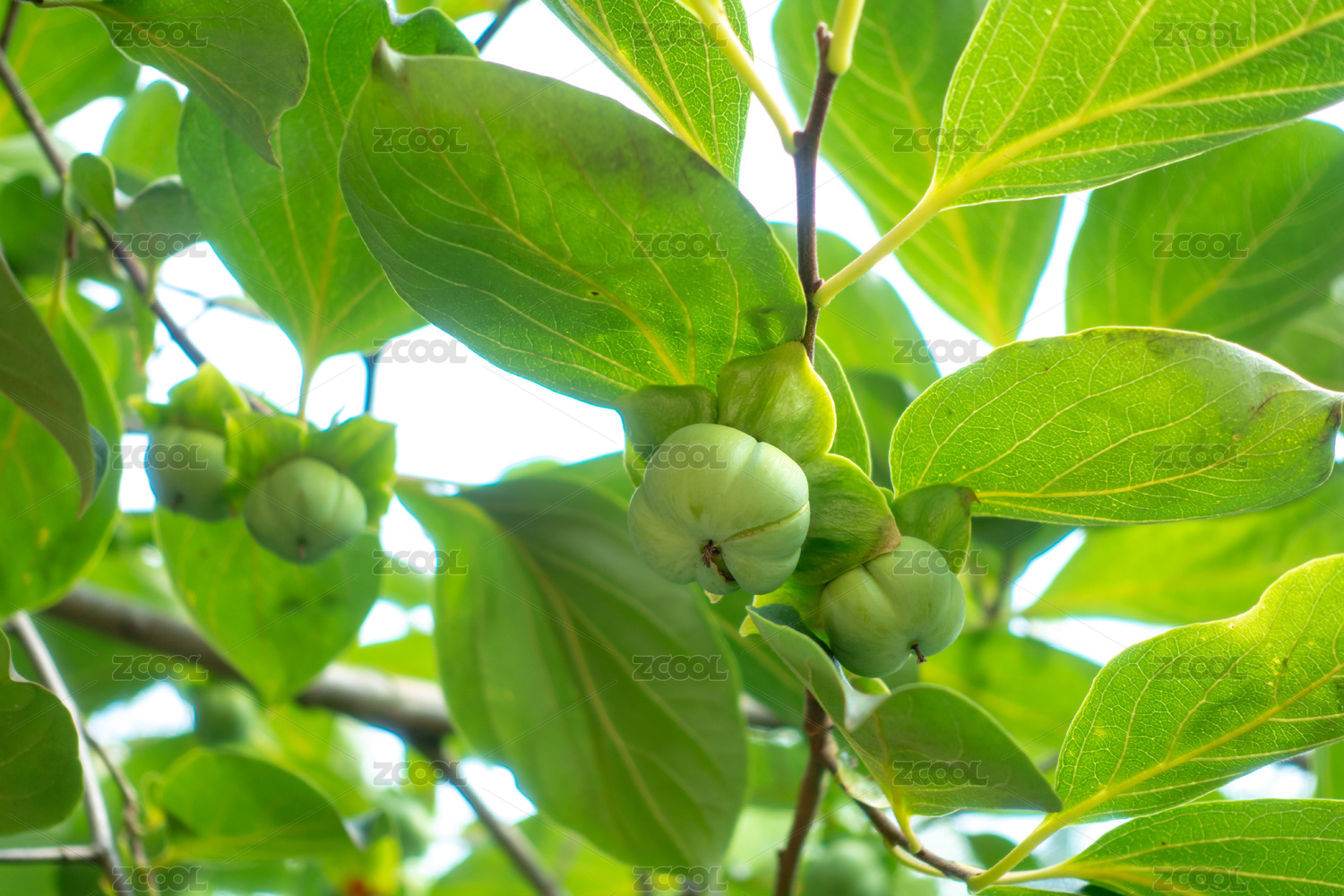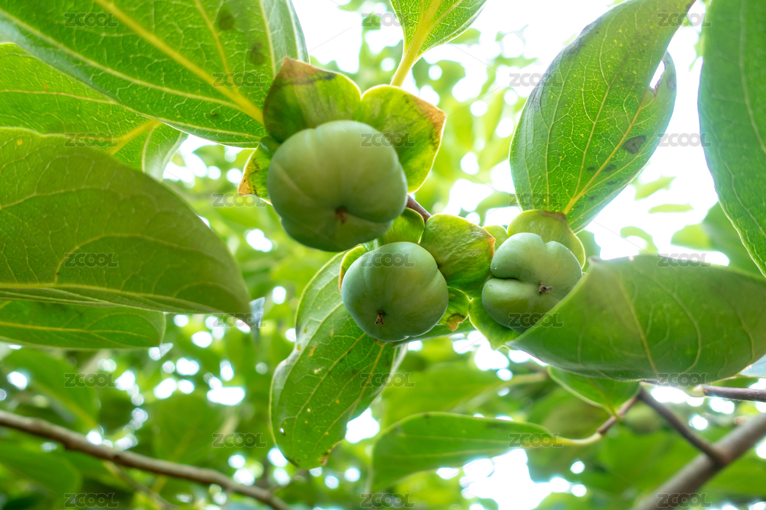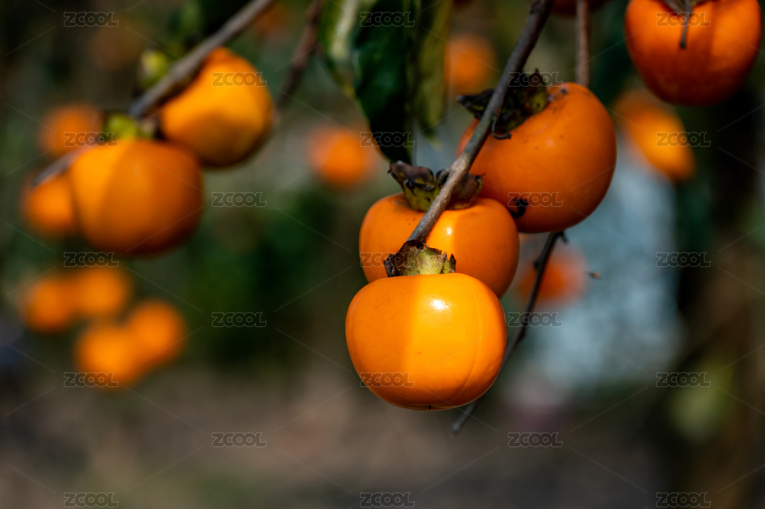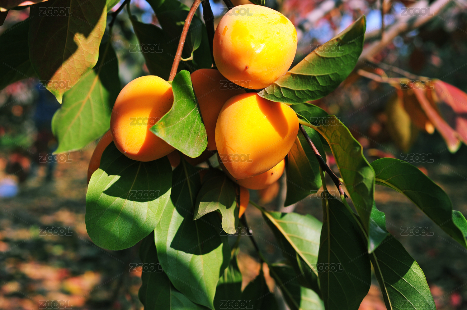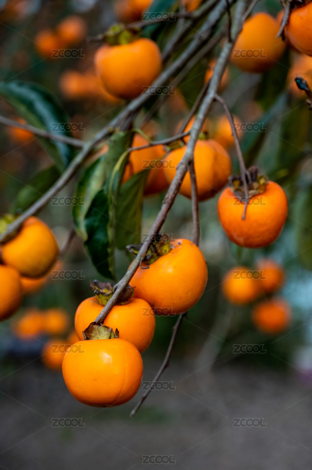 秋天的柿子樹枝頭掛滿成熟的紅柿子