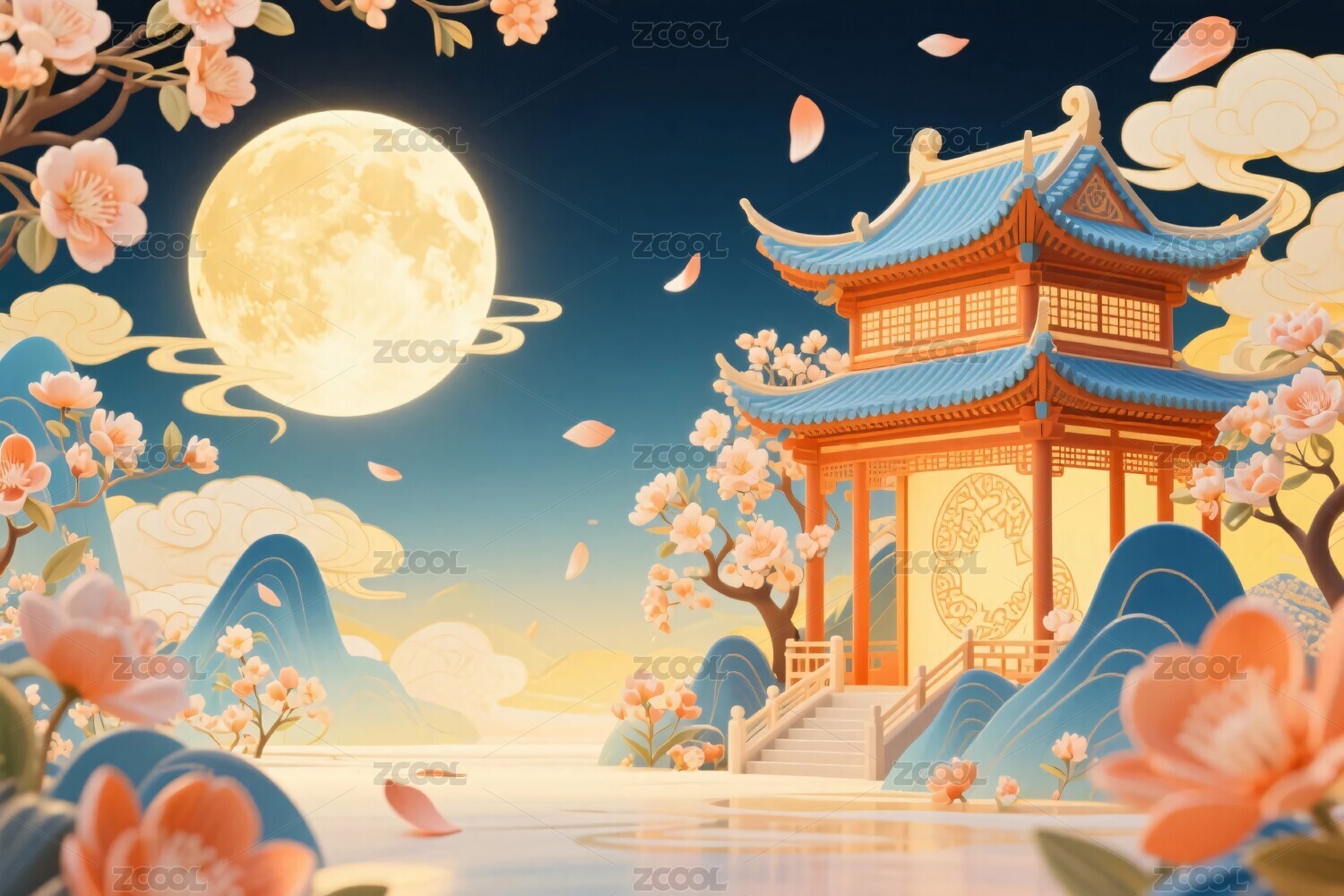 中式山水花鳥意境插畫
