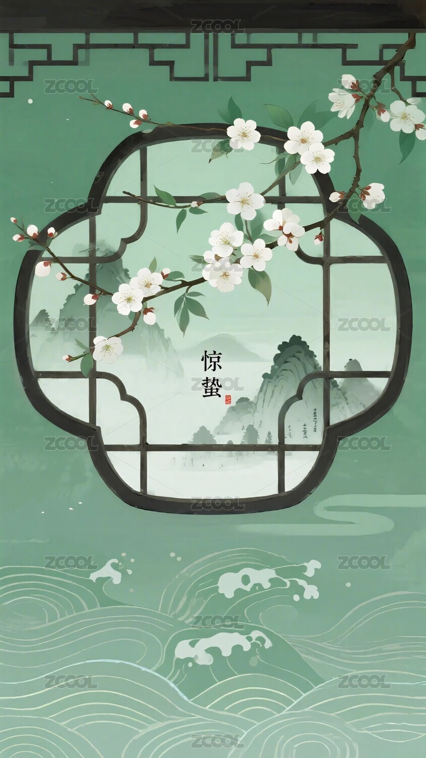 中式窗景插畫