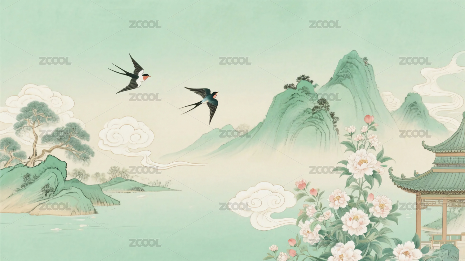 水墨風(fēng)山水花鳥插畫