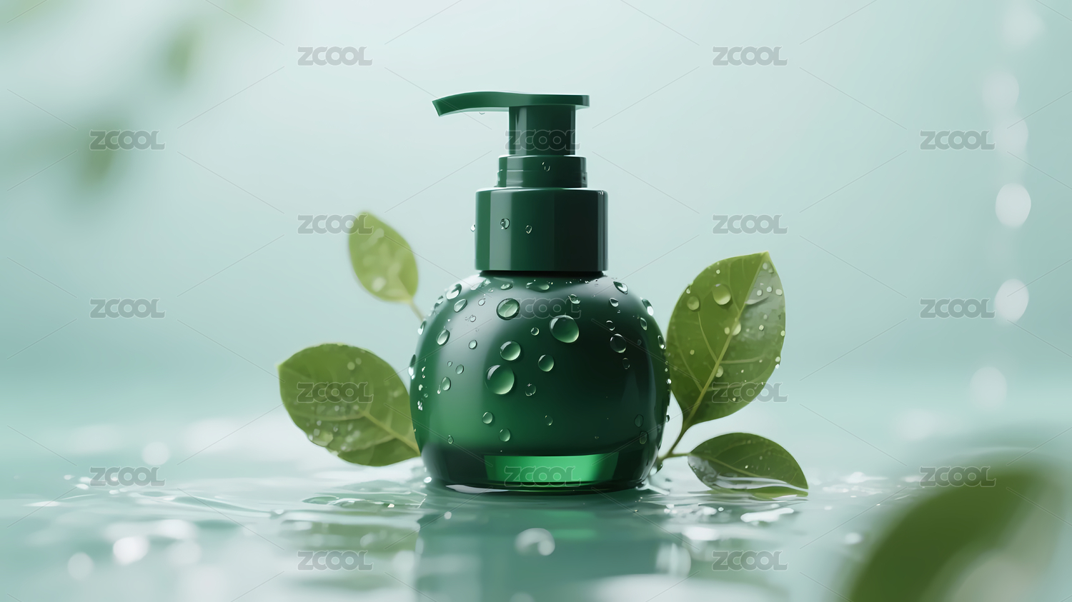 綠色泵式瓶水滴葉子