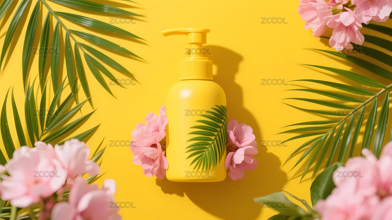 熱帶風(fēng)情的黃色泵式瓶子