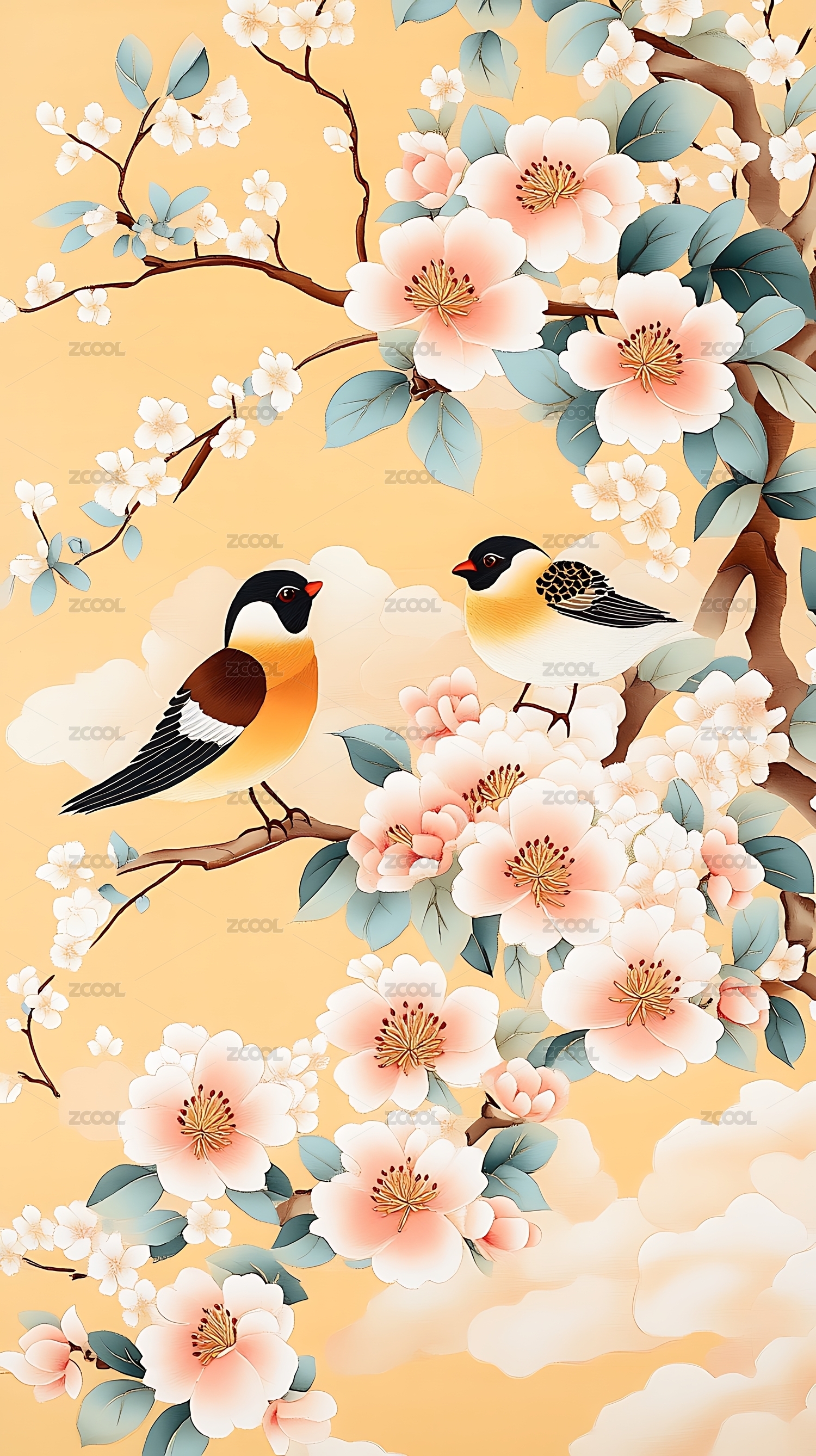 鳳凰楓葉花開富貴牡丹孔雀中式國畫裝飾素材客廳壁畫