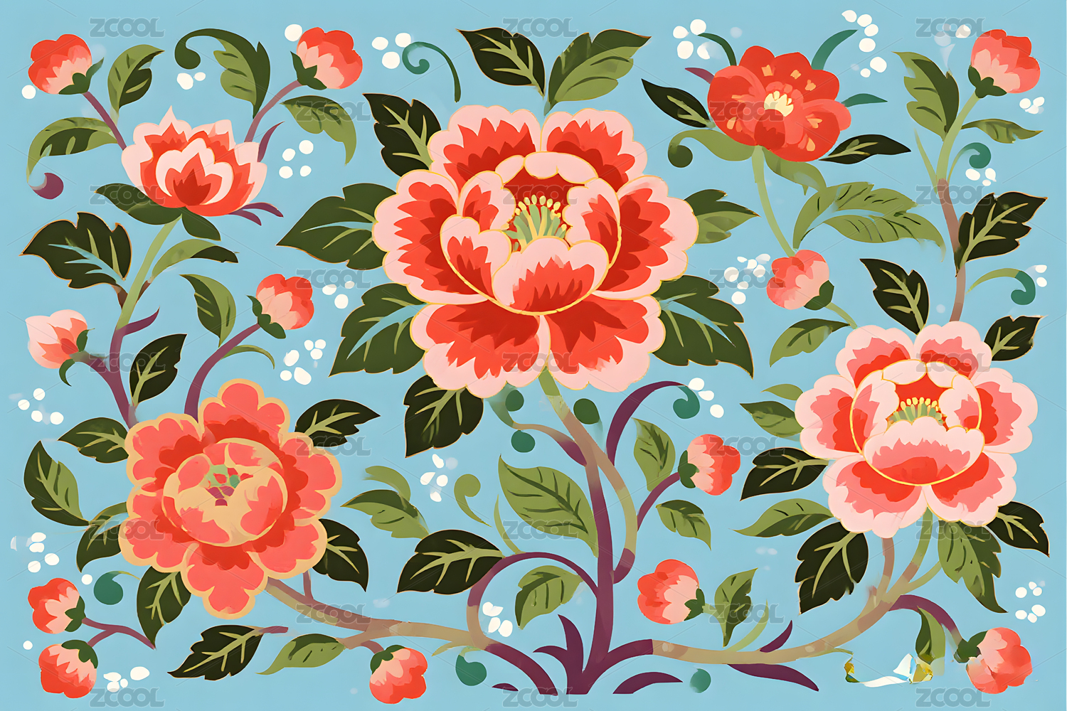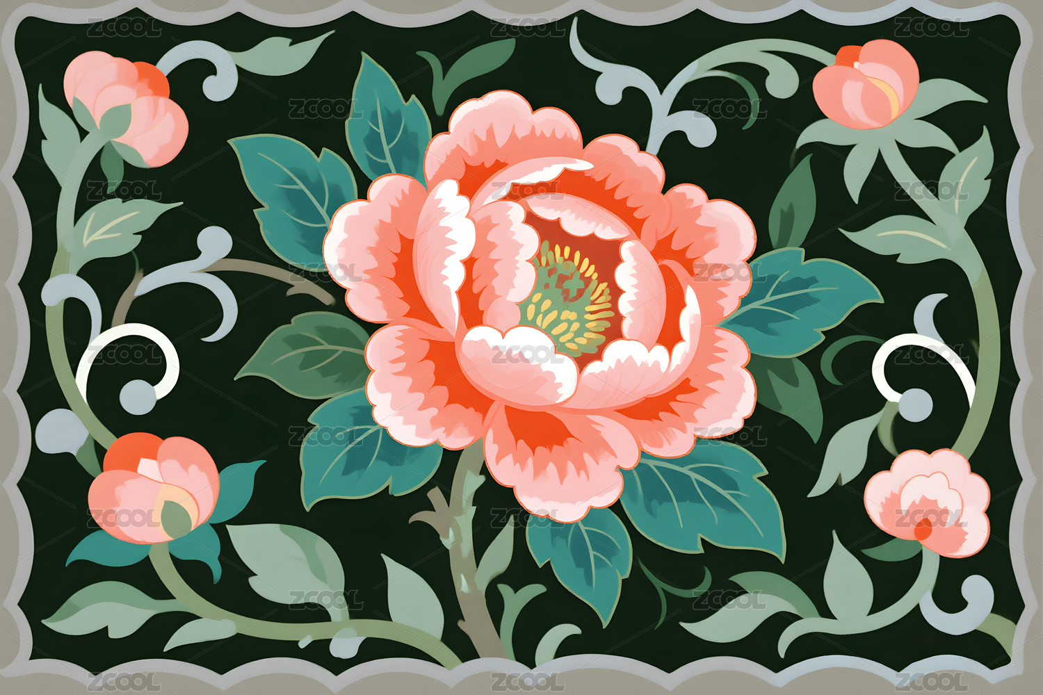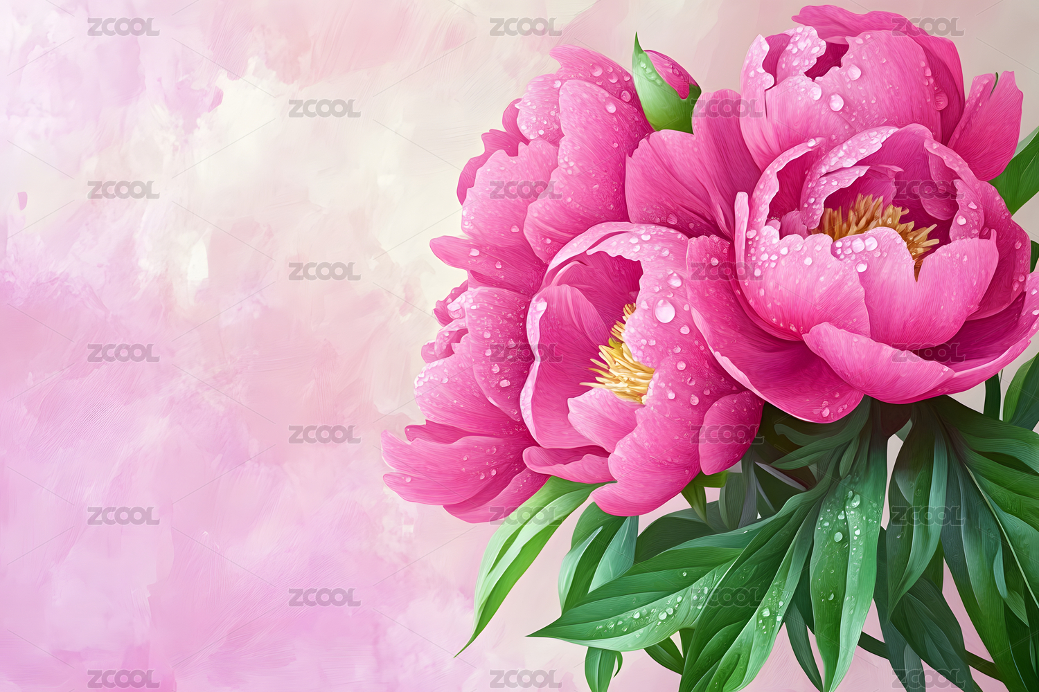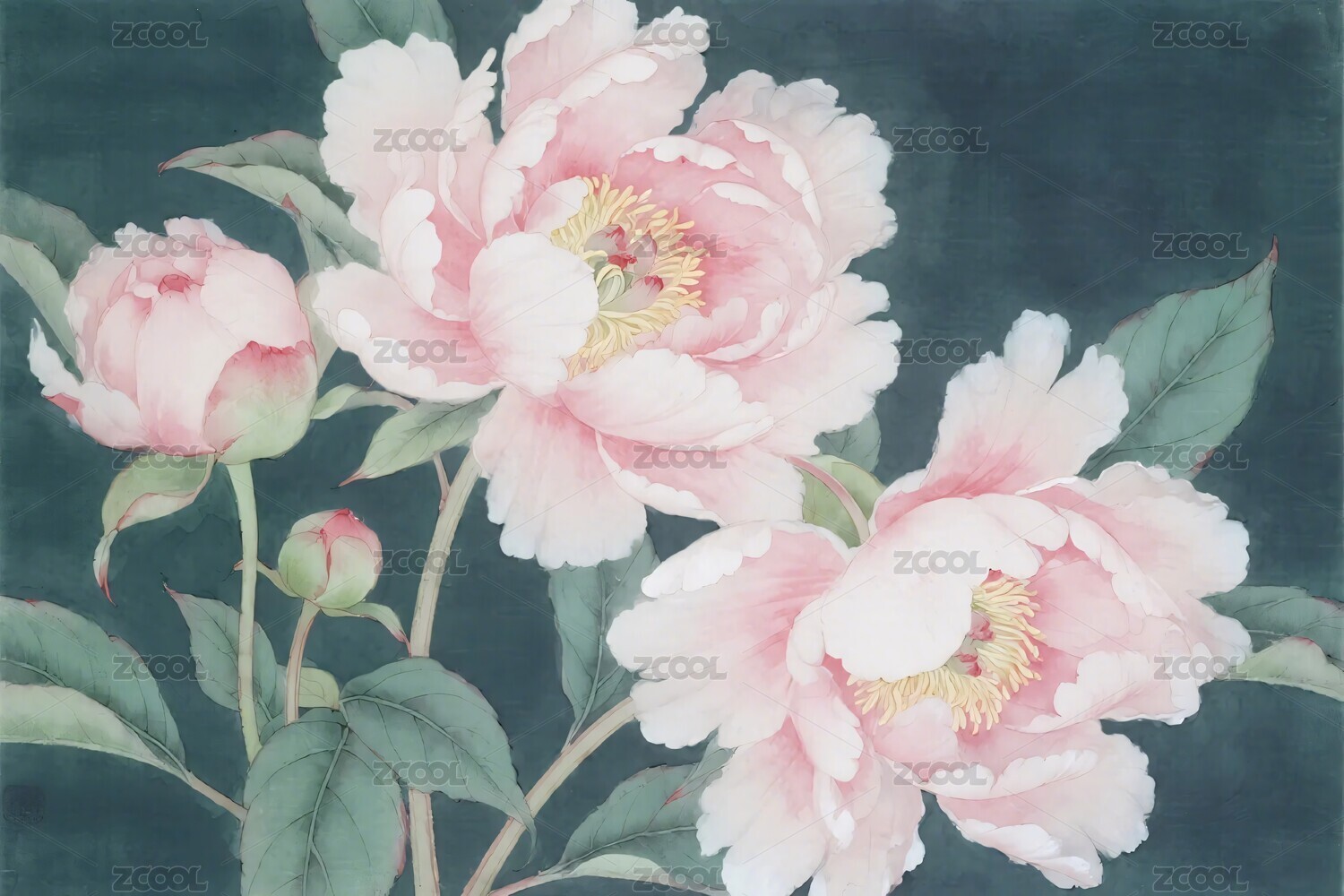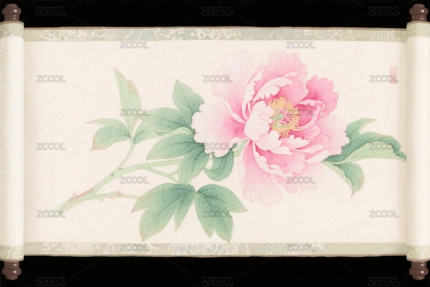 粉色牡丹花配蝴蝶的工筆水墨水彩裝飾畫